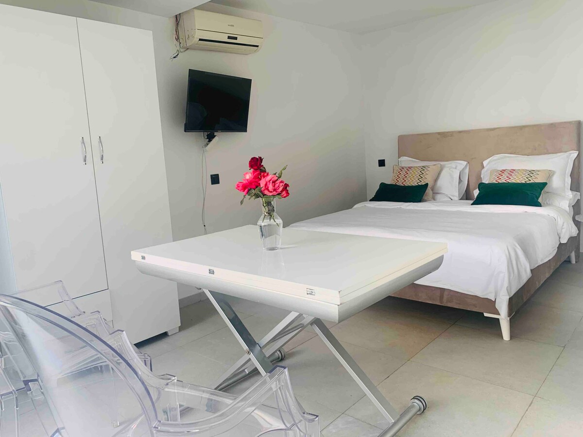 This Studio is located in a residential and quiet area, it’s a cozy and pleasant (S+0) situated on the ground floor of an independent villa next to the main street Hedi Nouira Very close to a various facilities, especially Groceries stores, Coffee shops and restaurants, Banks, etc. Tunis Carthage Airport is 15 minutes away Ideal for Business and touristic trips, couples, children are also welcome We look forward to welcoming you throughout the year. We speak French, English and Arabic