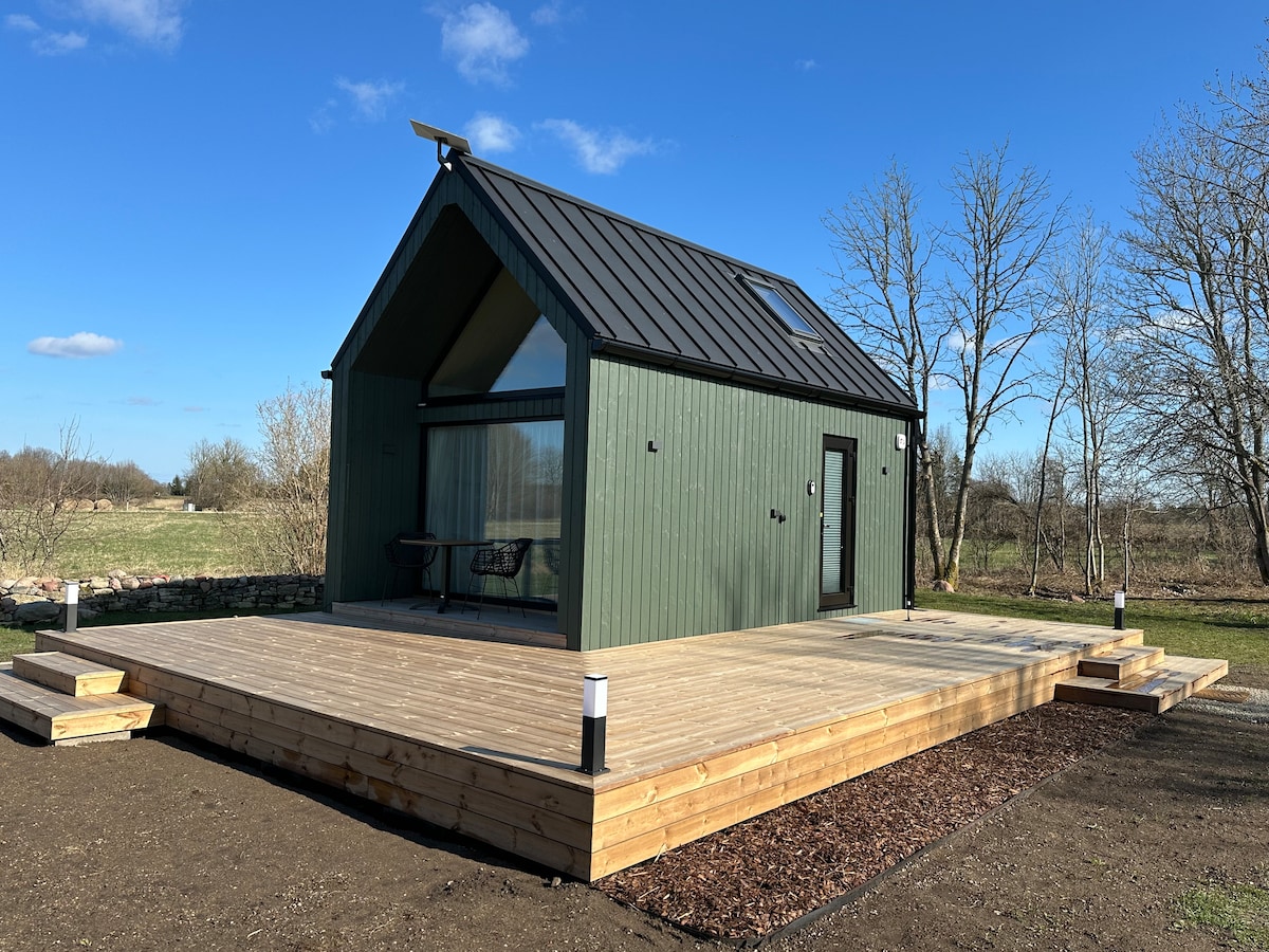 A cozy tiny house surrounded by nature, with open field views right from your bed. Designed for slowing down, relaxing and escaping the noise of the city. Fully equipped for cooking , fast Starlink internet – perfect for a quiet getaway or remote work. BBQ grill, outside table and chairs on the terrace. 20 m² downstairs + 12 m² upstairs. 12 km to nearest store in Leisi. Cabin is located in the heart of Saaremaa: Angla Windmills – 8 km Kaali Crater – 14 km Kuressaare – 30 km