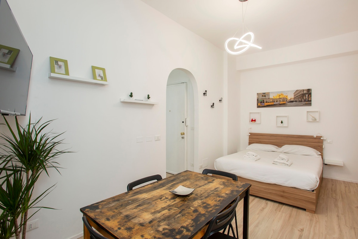 I et typisk Vecchia Milano-hus med balkong, en koselig, lys og veldig rolig to-roms leilighet. Fem minutters gange fra T-banestasjonen, i nærheten av Fondazione Prada og flere restauranter og puber. Leiligheten er godt organisert: stuen med spiseplass, arbeidsplass og komfortabel sovesofa, soverommet med dobbeltseng og skrivebord. Hyggelig uteplass for å slappe av og nyte roen i himmelen og takene. Svært raskt wifi: 420 mbps