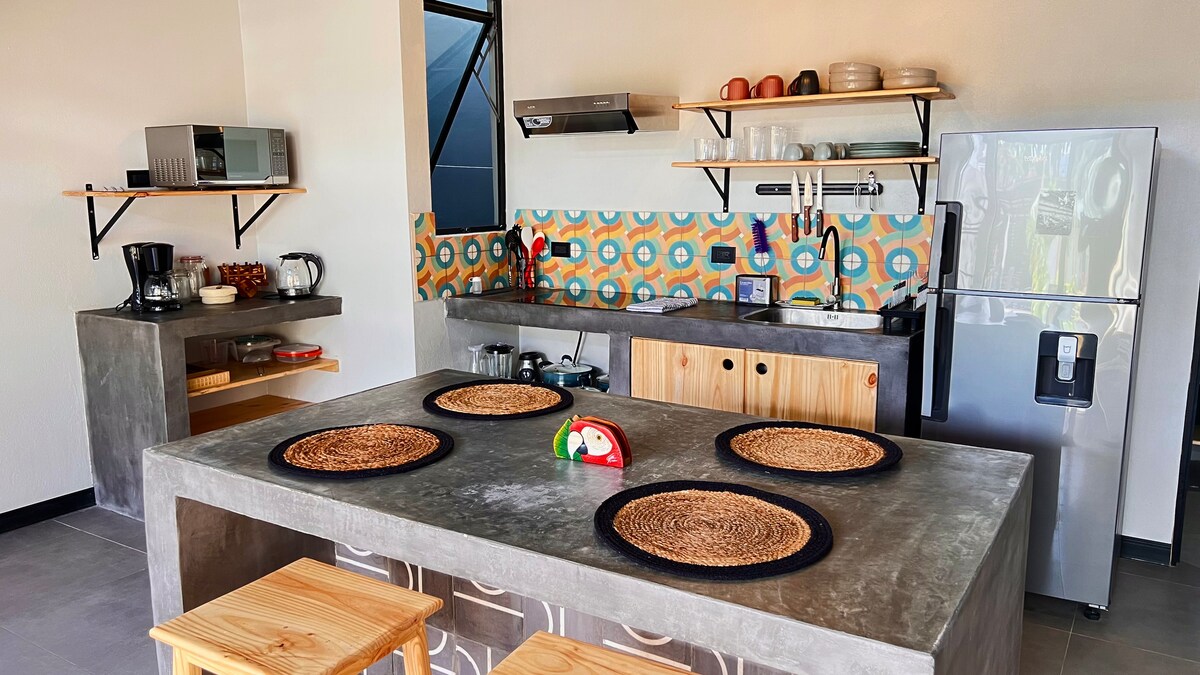 Eiendommen vår ligger i en inngjerdet leilighet bare tre minutter fra Playa Hermosa verdenssurfingreservat, og har to identiske loftsleiligheter, hver med plass til fem personer, med utstyrt kjøkken og et hengende nett av topp kvalitet for å slappe av etter dagen. Du har et privat basseng og en bålplass kun for gruppen din. Nyt det rolige nabolaget og se ara, tukaner og leguaner. I nærheten av Manuel Antonio nasjonalpark og Jacó er det den ideelle basen for eventyr eller avslapning. Bestill nå og opplev Pura vida!