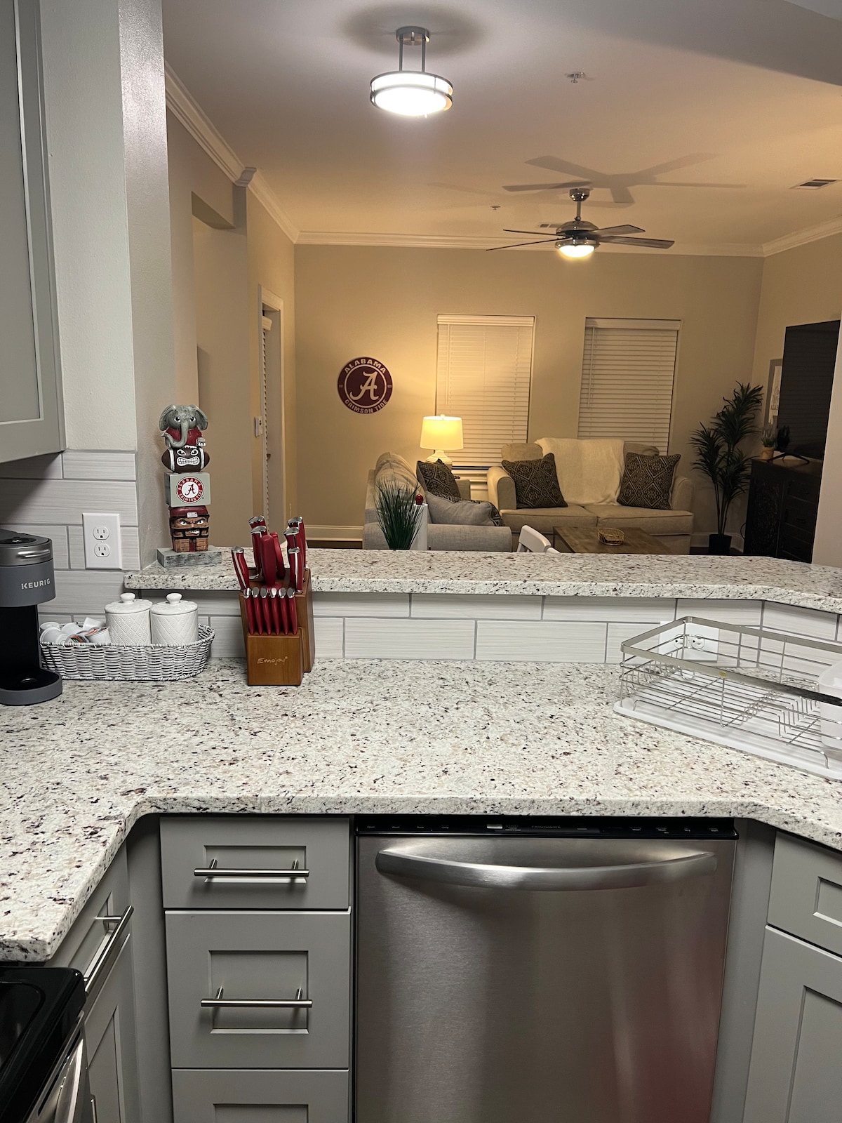 Denne nylig oppdaterte leiligheten med to soverom og to bad ligger bare en halv mile unna Bryant Denny stadion og inkluderer to parkeringskort på stedet. Alle nye kingsize-senger, møbler, sengetøy, laken med 1000 tråder og fullt utstyrt kjøkken. Klubbhuset i fellesområdet har et flott basseng, treningssenter, forretningssenter og solarium. HOA tilbyr til og med cateringmat på kamphelger i klubbhuset. Bymyndighetene i Tuscaloosa STR tillatelse #129520