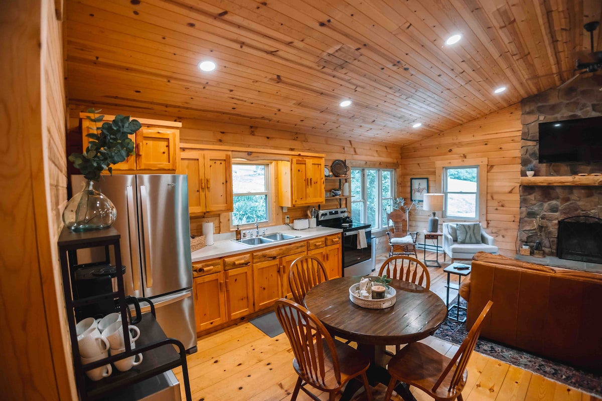 Trekk deg tilbake til Fresno Escape! En privat hytte med boblebad året rundt, perfekt for avslapning. Gjemt blant furutrær og steiner i hjertet av Amish-landet, hvor sporadiske klipp-klapp av hester og vogner gir sjarme. Det kunstnerisk møblerte hjemmet er innredet som et jernbanedepot, og viser intrikate steinarbeid, fliser og egendefinert farget glass. Kjøkkenet har apparater og kjøkkenutstyr, og uteområdet har en propangrill. Det er gratis ved til bålplassen.