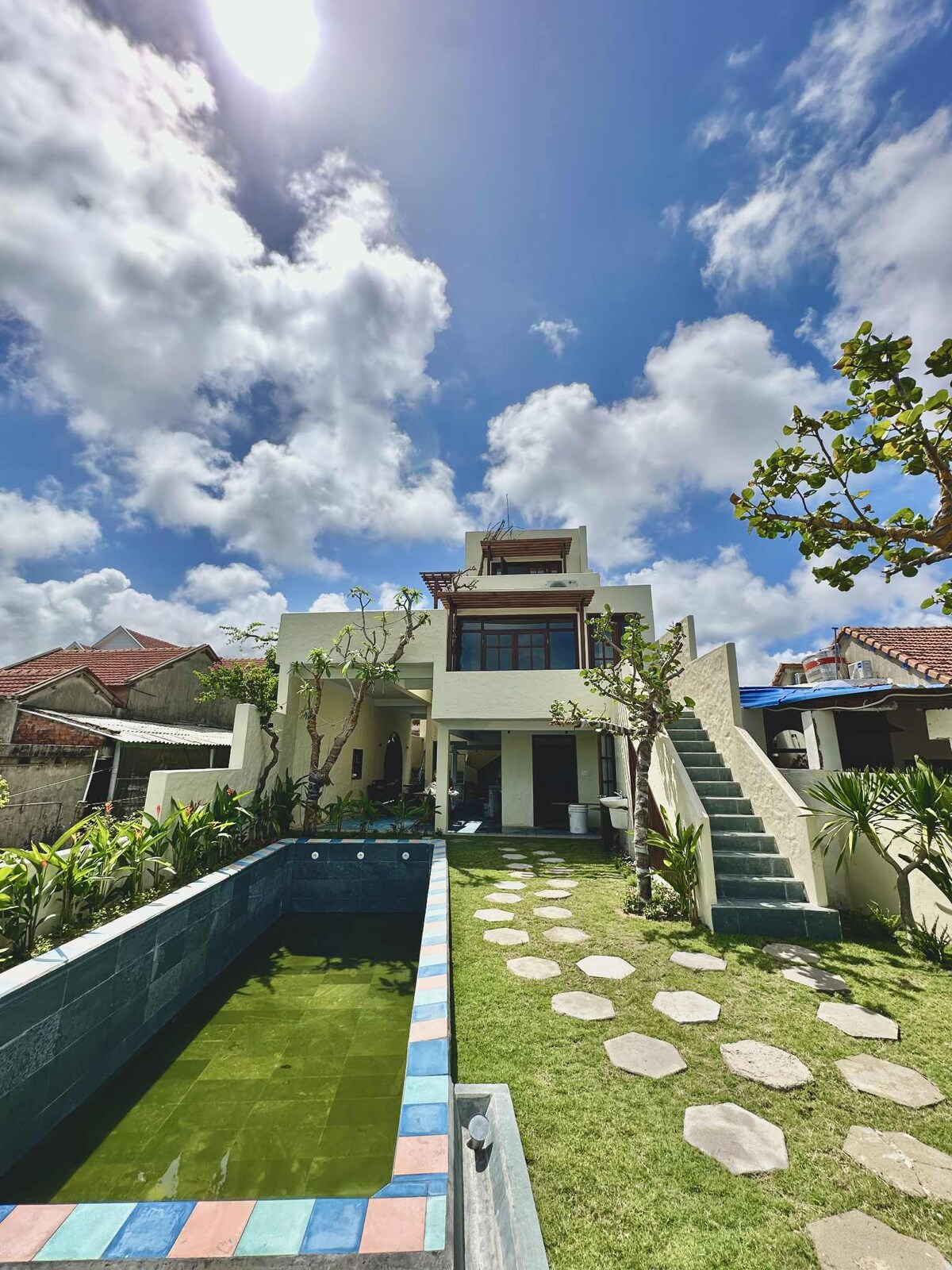 Luksuriøs villa med strandutsikt i en rolig landsby ved havet (Lo 3), sør for Tuy Hoa. Bare 20 meter å gå til stranden, i nærheten av en av Vietnams vakreste kystveier. Tre soverom med kingsize-senger + ett loft med queensize-seng, alle lyse og romslige, designet for å bo og jobbe hjemmefra. Jacuzzi, grill på taket med havutsikt, basseng med solnedgangsdekk, komplett kjøkken, Netflix, vaskeri, sykler. Bygget som vårt eget andre hjem av en nederlandsk-vietnamesisk digital nomadefamilie – hver detalj oppfyller 4–5-stjerners feriestedstandarder.
