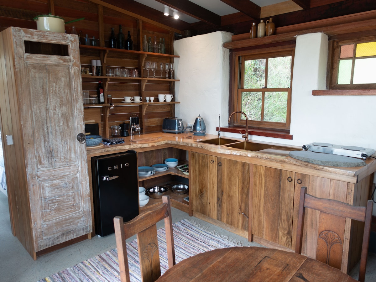 Kryss broen og gå inn i et magisk paradis. Denne romantiske og avsidesliggende hytta ligger blant trærne, i en tropisk oase med utsikt over bekken. Vakkert innredet interiør med en balinesisk følelse, komplett med fullt utstyrt kjøkken, utendørs frokostbar, trådløst nettverk, Netflix, koselig vedfyring for vinteren og kjølig aircondition for sommeren. Flykt til dette magiske paradiset.