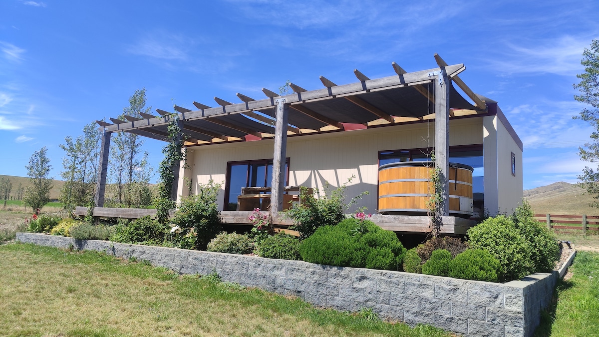 For romantikere og naturelskere er det lille, elegante feriehuset vårt på landet et perfekt tilfluktssted i nærheten av Mount Cook og Tekapo. Den søte hytta ligger på en rolig eiendom på 4 hektar med en fantastisk utsikt over fjellet og en vidstrakt stjernehimmel. Beliggende bare 17 km unna byen Twizel, og byr på både privatliv og moderne bekvemmeligheter. Besøk Tekapo eller Mt. Cook, og slapp deretter av i et privat vedfyrt boblebad under stjernehimmelen i Dark Sky Reserve! Et fredelig sted for å lade opp. Det er bare 50 minutter til Mt. Cook/Tekapo eller 2,5 timer til Queenstown.