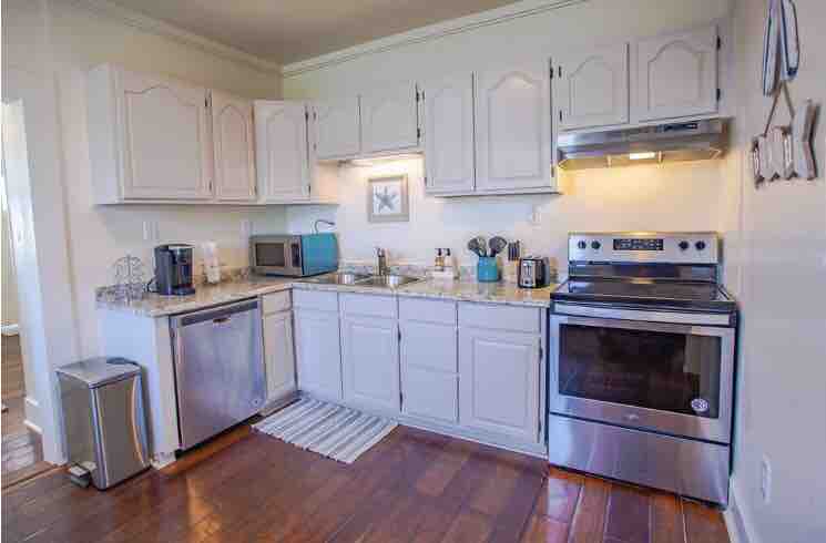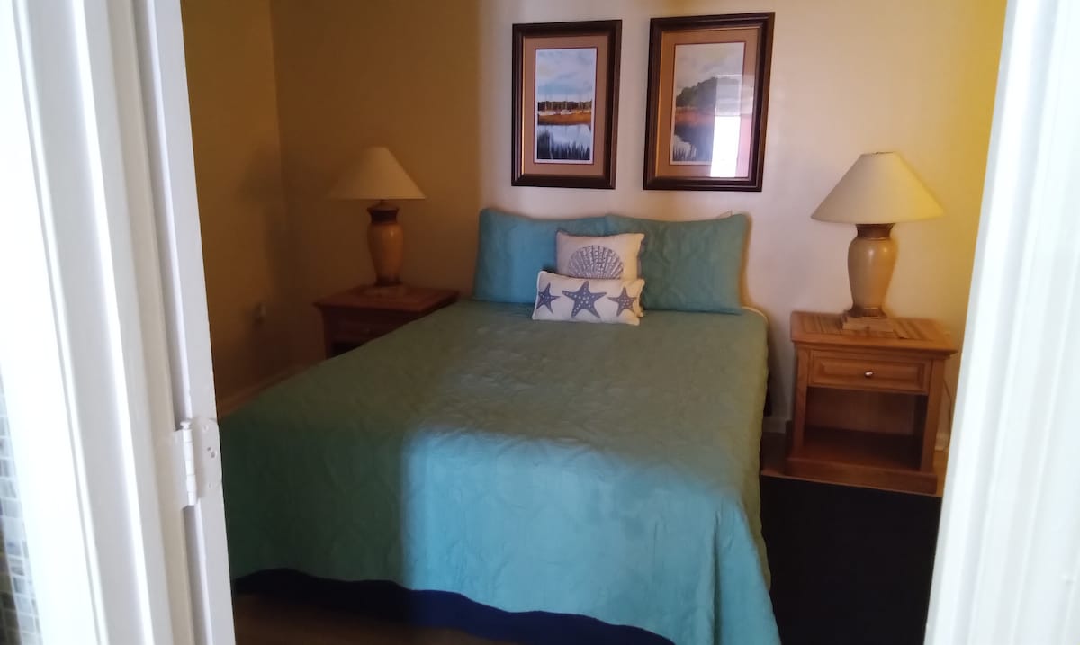 Ligger et par kvartaler fra stranden og på sørenden av Tybee ved bryggen. Gangavstand til butikker, restauranter og natteliv. Fasilitetene inkluderer basseng, piknikområde og to tildelte overbygde parkeringsplasser. Tilgang til heis/trapper. Denne enheten tilbyr et fullt utstyrt kjøkken med apparater i rustfritt stål, benkeplater i granitt, tilpasset vaskemaskin/tørketrommel. Alle soverom har helt nye smart-TV-er/kabel-TV. Sovesofa i stuen. Parkeringsgarasjen har 7 fots klaring.