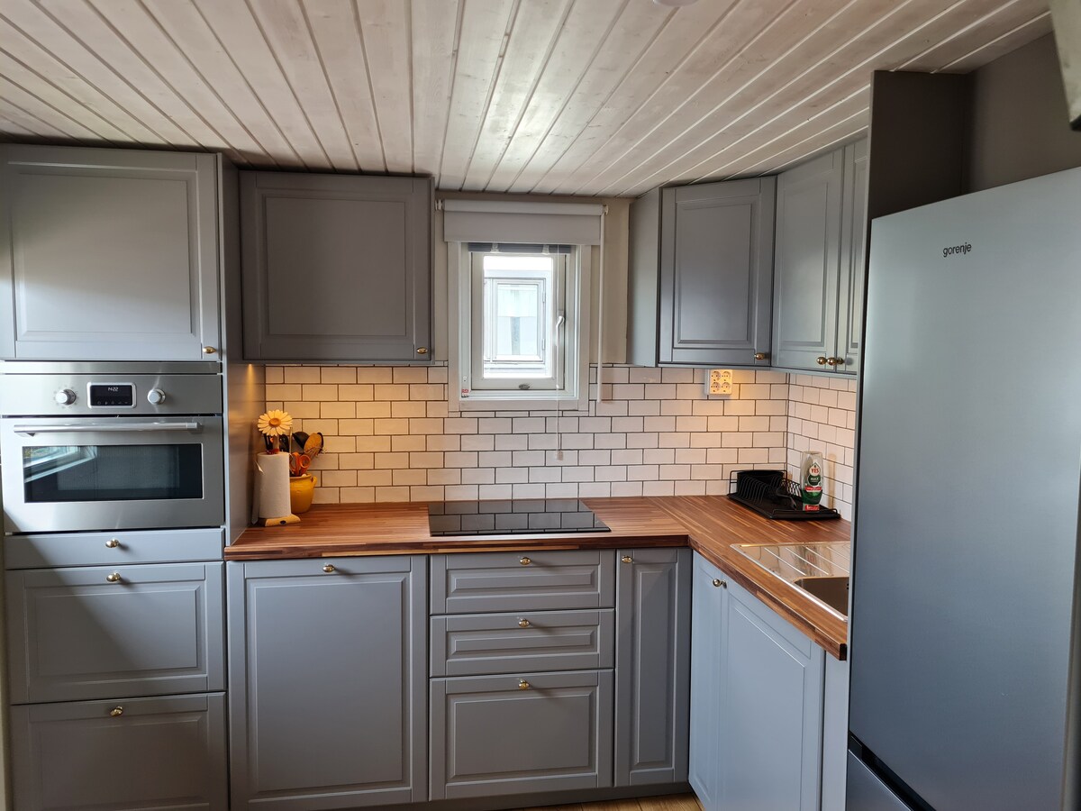 Leilighet med egen inngang, 300 meter fra stranden og 750 meter fra Halmstad Golf Club. Ca. 950 meter til Hotel Tylösand og 100 meter fra den fantastiske Prins Bertils sti. Det er to 80 cm senger på et separat soverom og en 160 cm dobbeltseng i stuen. Sengetøy og håndklær er inkludert. HD-TV med HDMI-kabel og Chromecast er tilgjengelig. Det er vaskemaskin, tørketrommel og fullt utstyrt kjøkken. Tilgang til hage og grill tilbys på forsiden av gjestehuset. Parkering er tilgjengelig.