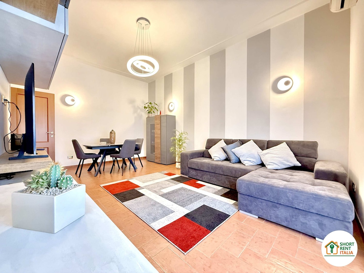 Moderne designleilighet i fjerde etasje med heis i en historisk bygning foran Santa Maria Novellas togstasjon. I hjertet av byen, noen få skritt fra monumenter og shoppinggater, og utstyrt med alle bekvemmeligheter, med plass til opptil seks personer. Det er to komfortable dobbeltrom og ett enkeltrom (koblet til et dobbeltrom) og én sovesofa, to bad med dusj, hvorav det ene er privat til et rom. TV og aircondition på rommene og i stuen.