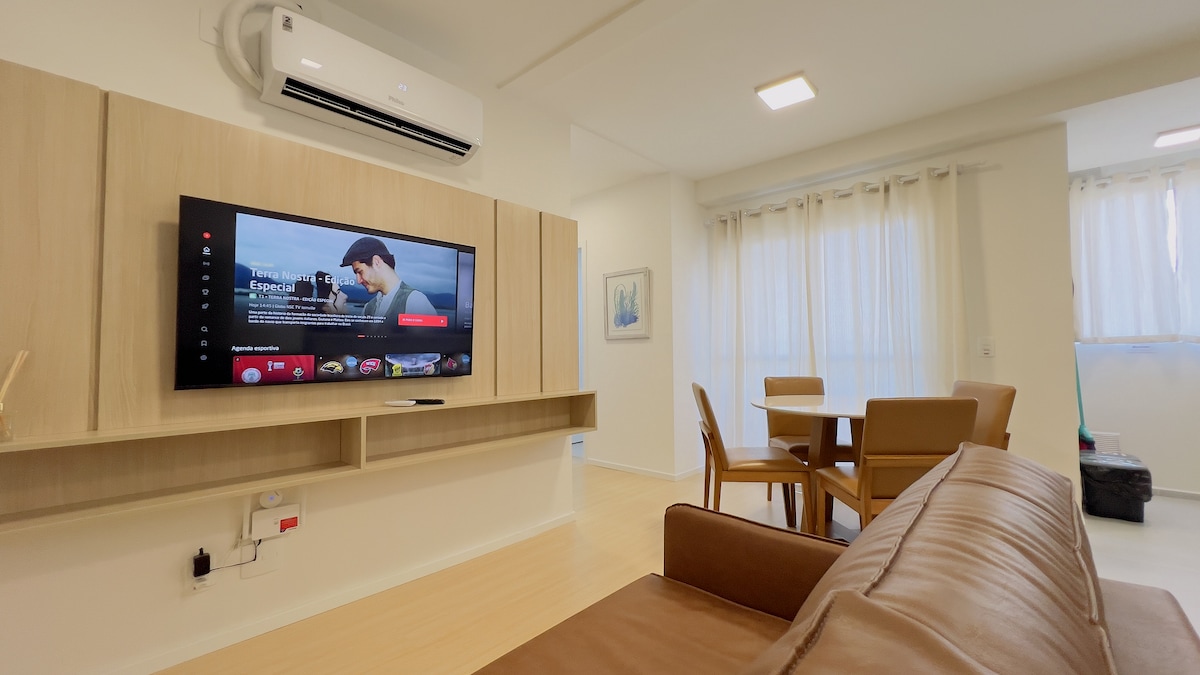 Ny leilighet, innredet eksklusivt for gjester, med all den komforten og praktiskheten du fortjener. Eiendommen ligger i sentrum av Itapoá, bare 50 meter fra stranden, og tilbyr to soverom (én suite), en balkong med en grill og en utrolig utsikt over havet. Perfekt for familier eller små grupper, med plass til opptil fire voksne og to barn. Den har også raskt trådløst nettverk, en privat garasje og et superutstyrt kjøkken for korte eller lange opphold. Bestill nå og kos deg!