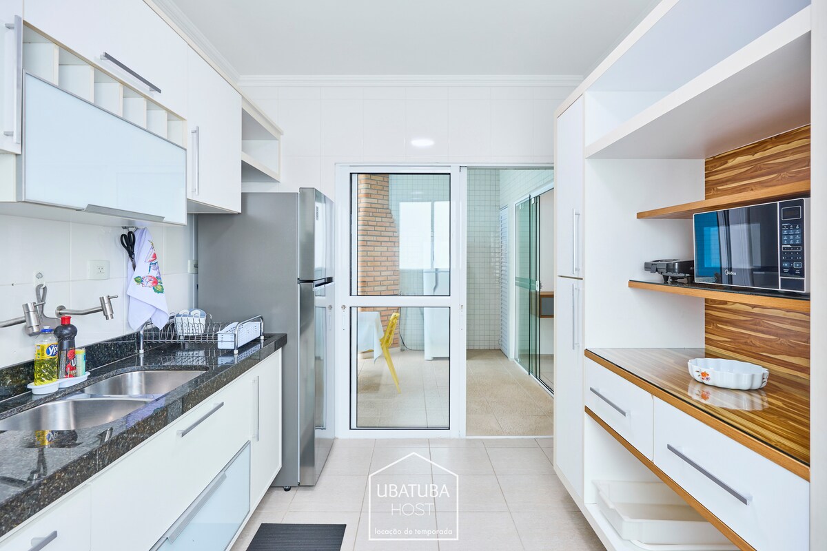 Nyt uforglemmelige dager i den moderne og komfortable leiligheten vår, perfekt for familiepar eller venner. Den ligger i et av de mest ettertraktede områdene i Ubatuba, og du er i nærheten av havet og en flott restaurant. Enten du vil slappe av på sanden, nyte båtturer eller utforske den naturlige skjønnheten i regionen, er leiligheten vår det ideelle valget for oppholdet ditt i Ubatuba. Den har 90 m for komfort og fritid, tilfluktsstedet ditt på den store stranden med infrastruktur og sikkerhet for familien.