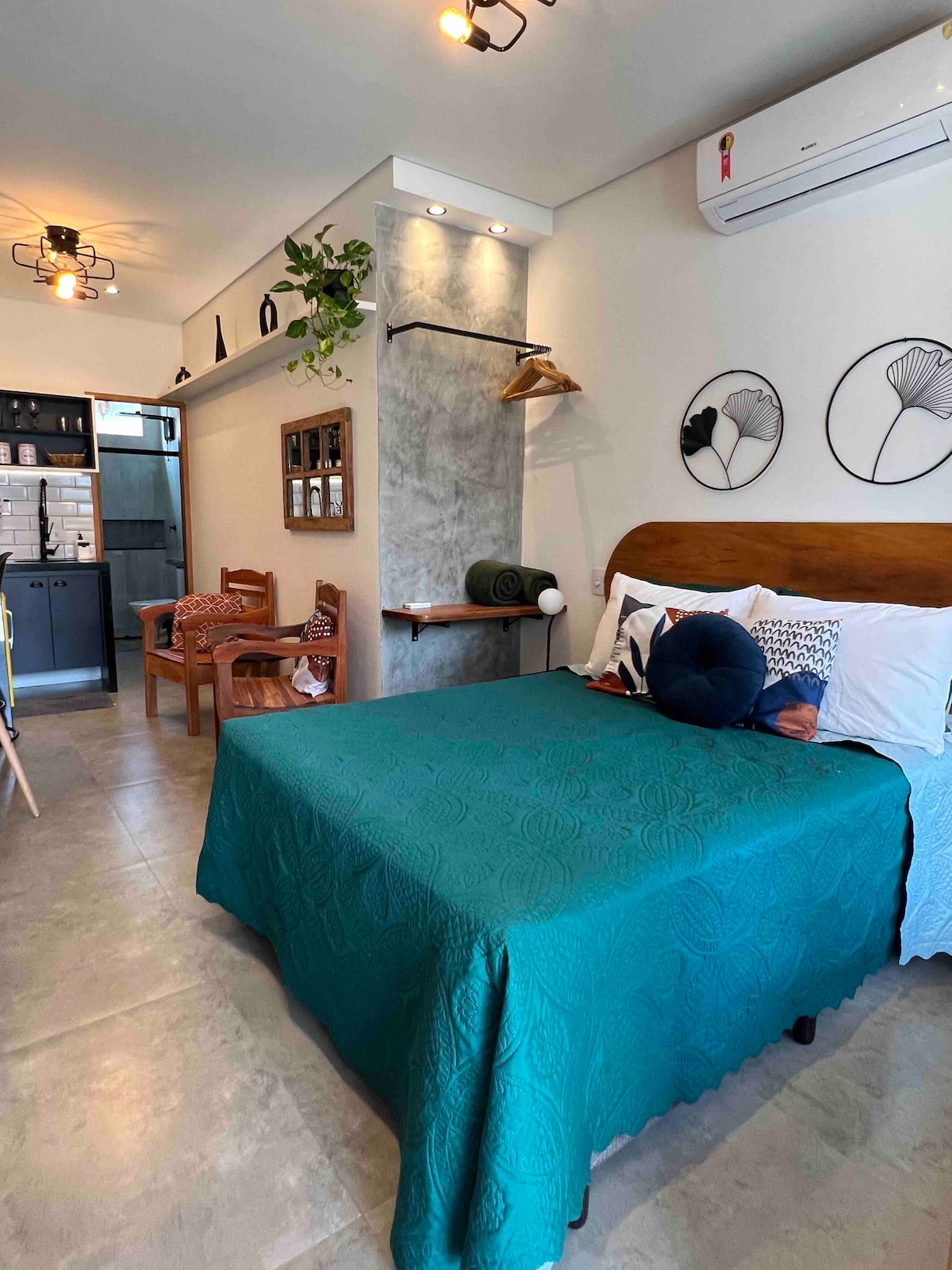 Her møtes komfort og praktiskhet! Studioet vårt er designet for at du skal få mest mulig ut av Ubatuba. Med aircondition, fullt utstyrt kjøkken, airfryer og til og med en innendørs grill, finner du det ideelle stedet å slappe av her. Fellesområde med svømmebasseng, grillplass, overdekket og eksklusiv garasjeplass. Den privilegerte beliggenheten plasserer deg i nærheten av strender, restauranter, kjøpesenter og attraksjoner som Tamar-prosjektet og det berømte Ubatuba-akvariet. Nyt et uforglemmelig opphold!