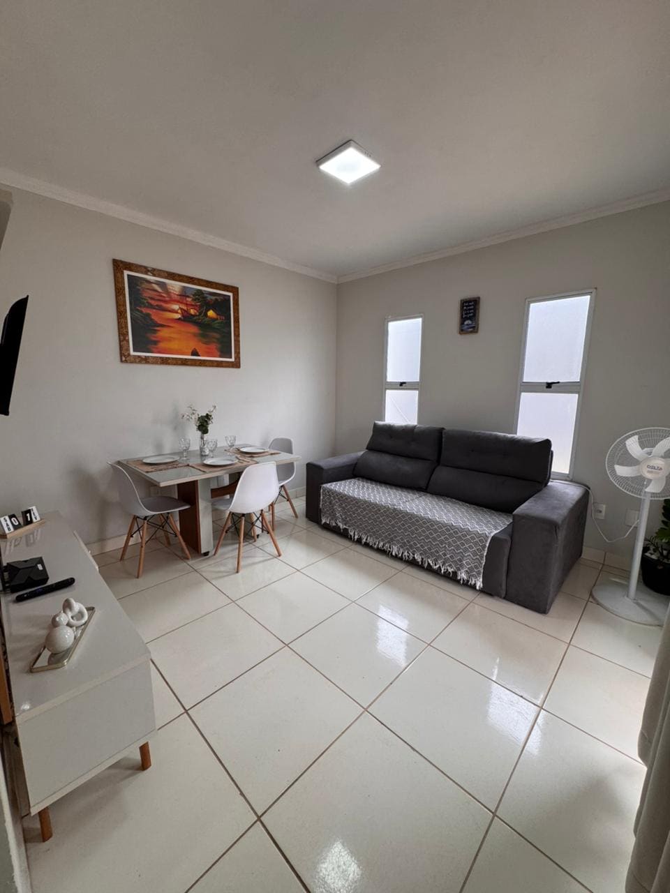 Nossa casa oferece a escolha perfeita para quem procura uma hospedagem tranquila e confortável. temos dois quartos, 1 com duas camas de solteiro e o outro quarto suíte com cama de casal. A quinta pessoa dormirá no sofá retrátil . Sala americana, Com mesa de jantar, balcão com duas banquetas, e um sofá retrátil reclinável e uma tv com tv box . Um diferencial da nossa casa e a sala conjugada sendo assim um amplo espaço e uma área externa, e também oferecemos toalhas e jogo de cama .