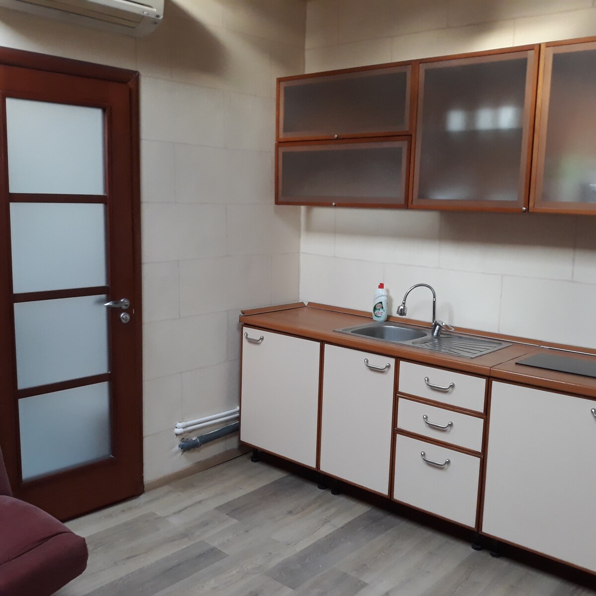 A cozy, comfortable two-level loft studio is situated on the 4th floor of a historic building that was built in 1917, that is located in the center of Kyiv near the Opera House and Khreshchatyk Street. “University” metro station is nearby within a 5-minute walk. This flat is a part of a small apart-hotel for 6 rooms. There is fold-out sofa inside and high-quality mattress for 2 beds on the mezzanine. The studio has its own small kitchen and its own bathroom with everything you need.