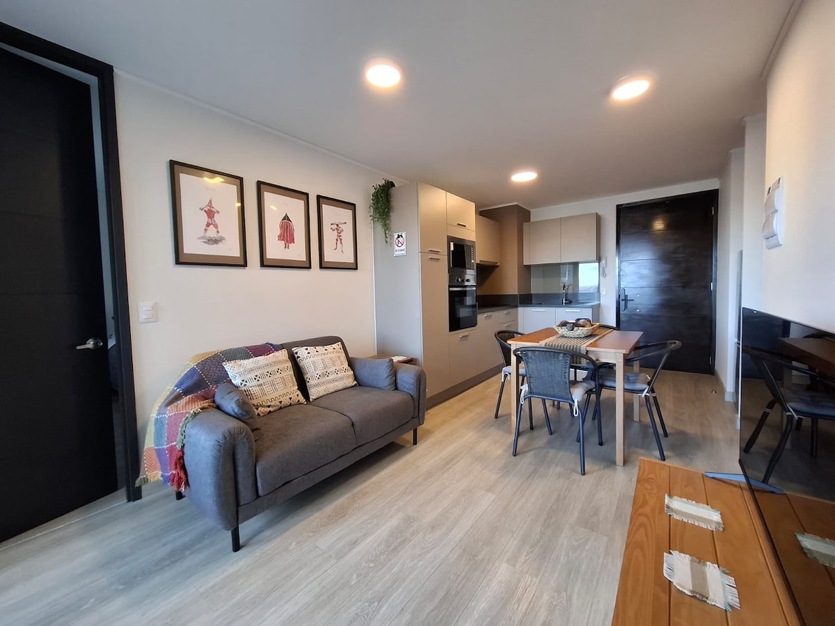 Moderne toetasjes hytte, 50 kvadratmeter stor, tilbyr renhold, komfort, god utsikt, ro i nærheten av sentrum og noen skritt fra en minimarked. Noen kvartaler fra busstasjonen, hvor en taxi koster 2000 CLP, fast pris. Vi ligger mindre enn 200 meter fra kysten