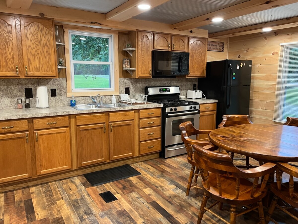 Dyrevennlig, luftkondisjonert hytte med privat fiskedam (fang og slipp). Svømming er tillatt (på eget ansvar). Milevis av stier, og en million dollar utsikt, total privatliv, og glitrende stjerner! Dark Sky-område! Turgåing, fugletitting, langrenn, terrengsykling. I nærheten av Genesee River. Fullt møblert kjøkken, terrasse med gassgrill, HD-TV/WiFi, leirbålplass (ved medfølger). Plass til åtte personer. JEGERE: 75 hektar for hjort- og kalkunjakt, maks 6 jegere. Må signere fritak og sjekke grensene med oss.