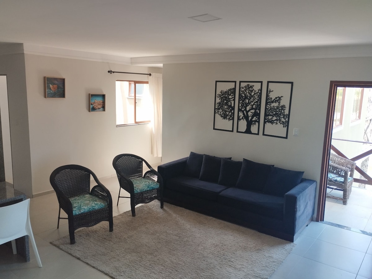 Koselig leilighet i andre etasje med en stor balkong på 16 m2, med skygge hele dagen. Nascent-posisjon, med utsikt over innsjøen og bassenget Ved siden av Saco Beach hvor jeg har passert buggy i sanddynene og på stranden, naturlige bassenger, besøk til Lagoa Azul, båttur, landsbyen Mangue Seco/BA og andre attraksjoner. Alt er møblert, luft på begge soverommene og mer.