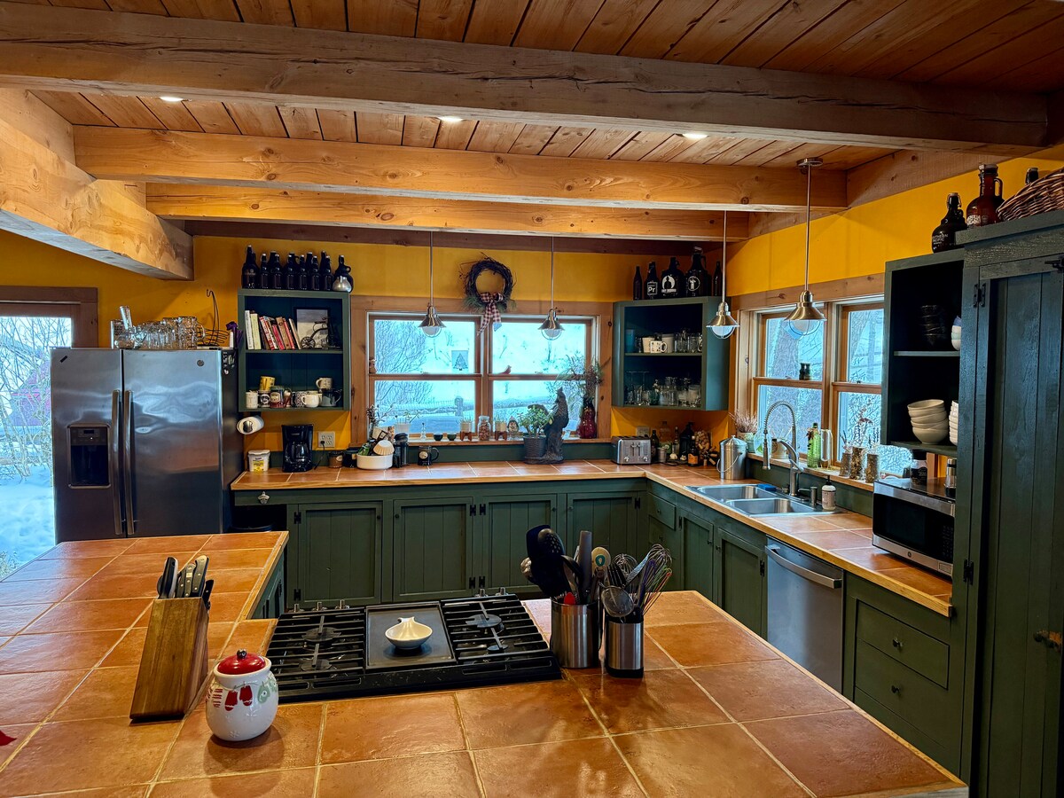 Ta det med ro og føl deg som hjemme i den treaktige hytta vår, bortgjemt i Cold Hollow Mountains. Når du går nedover innkjørselen, la bekymringene dine forsvinne – du er nå på hytte. Slapp av i badekaret med løveføtter etter en dag med reise eller tilbered et hjemmelaget måltid på det godt utstyrte kjøkkenet. Når morgenen kommer, kan du nyte kaffen mens du koser deg foran peisen, eller bli liggende i sengen og nyte utsikten. Og med rikelig med skog å utforske, er det det perfekte tilfluktsstedet i ditt eget tempo.
