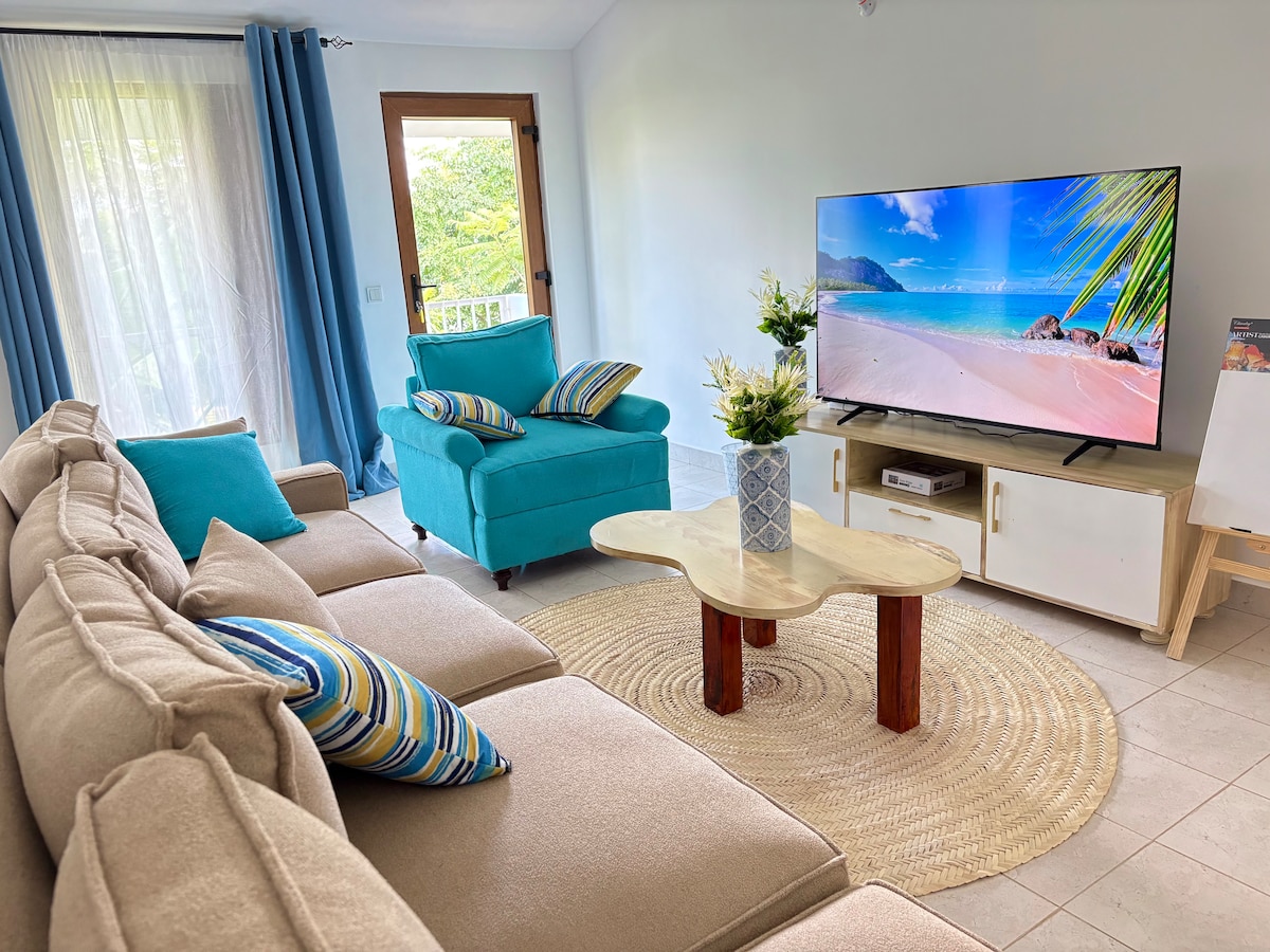 GRATIS HENTING PÅ FLYPLASSEN for opphold på fem netter eller lenger! Nyt oppholdet ditt i den luksuriøse, fullt møblerte leiligheten vår i et trygt, inngjerdet område. Perfekt for bryllupsreise, ferie eller fjernarbeid, med havutsikt, rask trådløs nettverkstilkobling og smart-TV. Har en queensize-seng med en overmadrass i minneskum, en sovesofa og et fullt utstyrt kjøkken. Inkluderer en privat vaskemaskin og tørketrommel, og ligger kun 15 minutter fra flyplassen. Fasiliteter på stedet - Restauranter – supermarked - svømmebasseng - generator