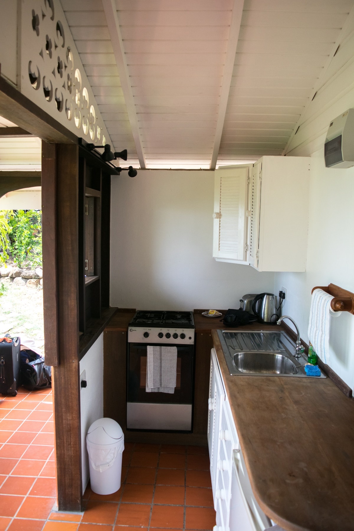 Prospect House ligger i åsene nord i Carriacou, avkjølt av havbrisen og omgitt av skog for absolutt fred. Garden Apartment er vakkert utstyrt, moderne og romslig. Alle rommene åpner seg direkte mot den store, private, vestvendte balkongen med spektakulær utsikt ut mot sjøen over tropiske hager. Luksuriøse baderomsarmaturer, toalettartikler og sengetøy er inkludert. Gjestene har gratis bruk av det fantastiske evighetsbassenget og soldekket.