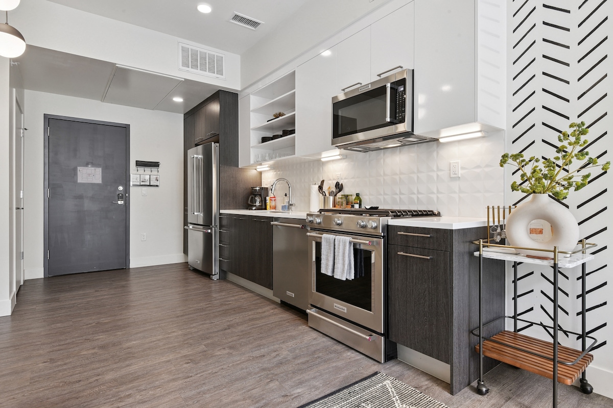 Opplev eksklusiv, moderne design fra midten av århundret i en høy bygning i hjertet av LoDo. Vinduer fra gulv til tak og en liten balkong gir fantastisk utsikt over sentrum. Fasilitetene inkluderer døgnåpen resepsjon, gratis parkering (dedikert plass), peis, kingsize-seng og fullt utstyrt kjøkken med en rekke kaffe- og tealternativer. Bare en rask spasertur unna er utallige restauranter og attraksjoner, inkludert Ball Arena (15 minutter), Coors Field (8 minutter), Union Station (5 minutter) og 16th Street Mall (5 minutter).