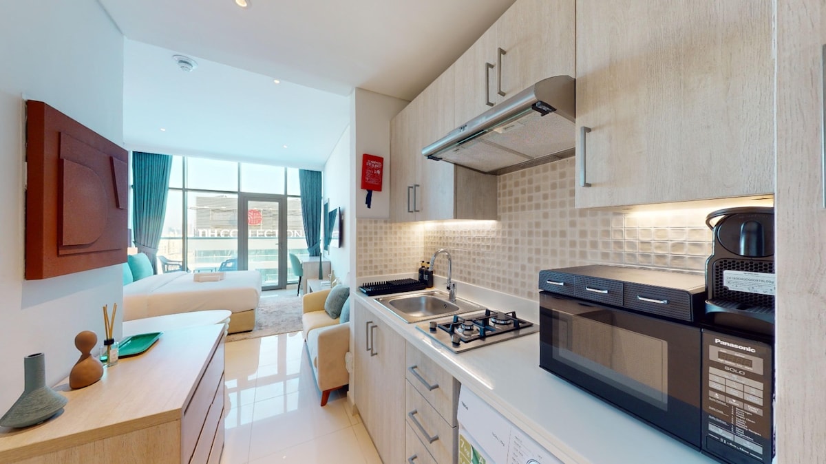 Kult studio nær metro og strand i Dubai Marina.