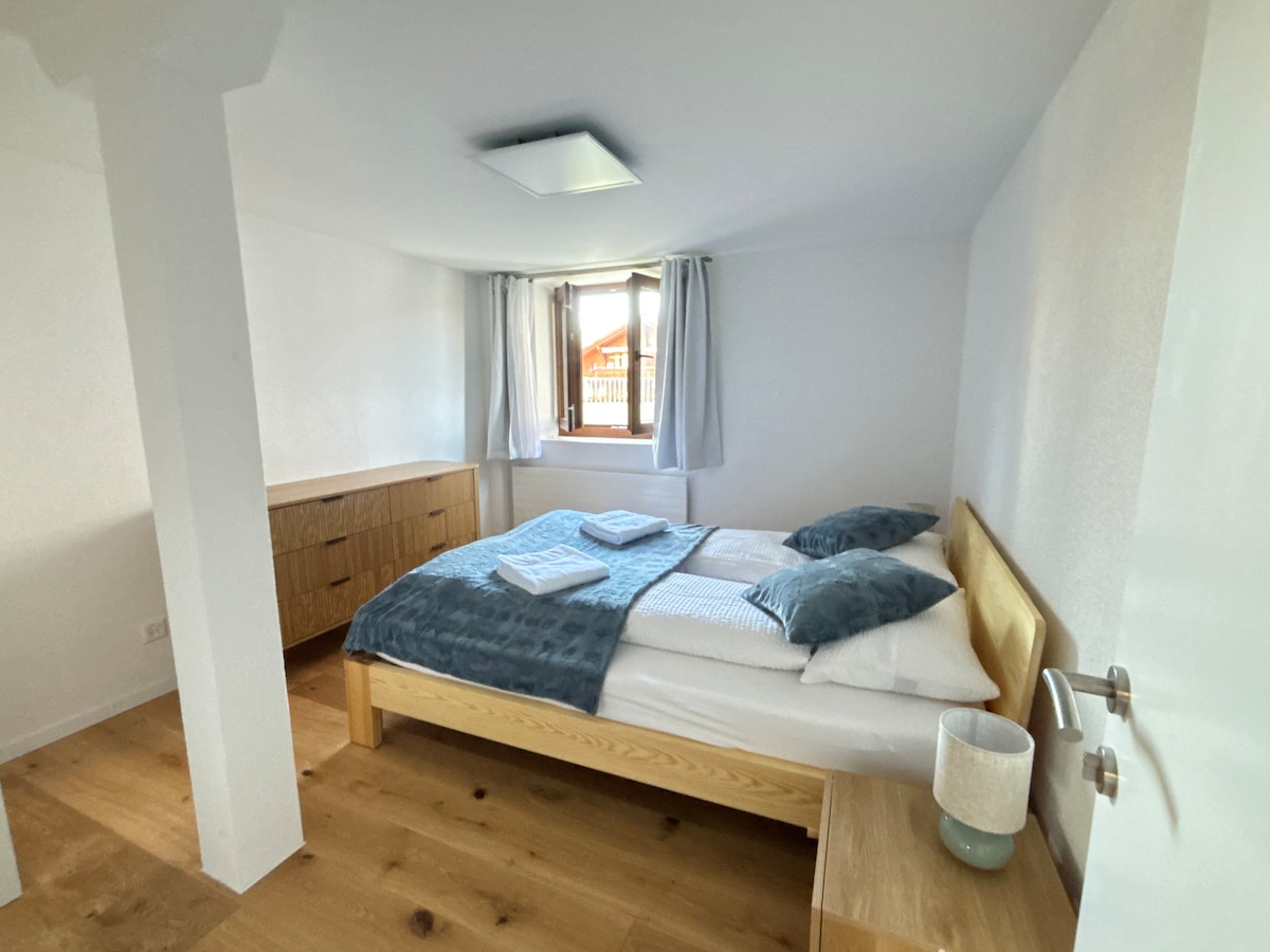 Denne sjarmerende 3,5-romsleiligheten ligger i sentrum av landsbyen og er en ekte perle i Kandersteg – direkte ved fjellelven. Leiligheten tilbyr to koselige soverom, en romslig stue og et lyst, unikt galleri. Det halvåpne kjøkkenet er romslig og velutstyrt, ideelt for de som setter pris på kontakt med stuen. Leilighetens to balkonger er spesielt bemerkelsesverdige. Begge balkongene har en imponerende panoramautsikt over fjellet.