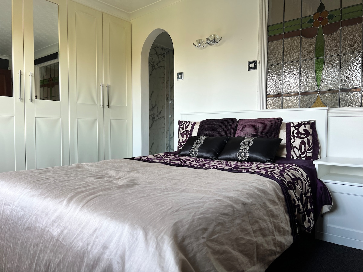 En komfortabel studioleilighet som skiller seg ut fra hovedhuset med parkering rett utenfor. Gjestene har sin egen inngangsdør, og det er en privat terrasse med utsikt over nabogården. Studioet har et privat dusjrom, rene håndklær og sengetøy. Det er et lite kjøkkenområde med mikrobølgeovn, brødrister og airfryer. Vi kan avtale innsjekkings- og utsjekkingstider som passer oss begge, og vi gir deg gjerne råd om lokalområdet. Bare spør!