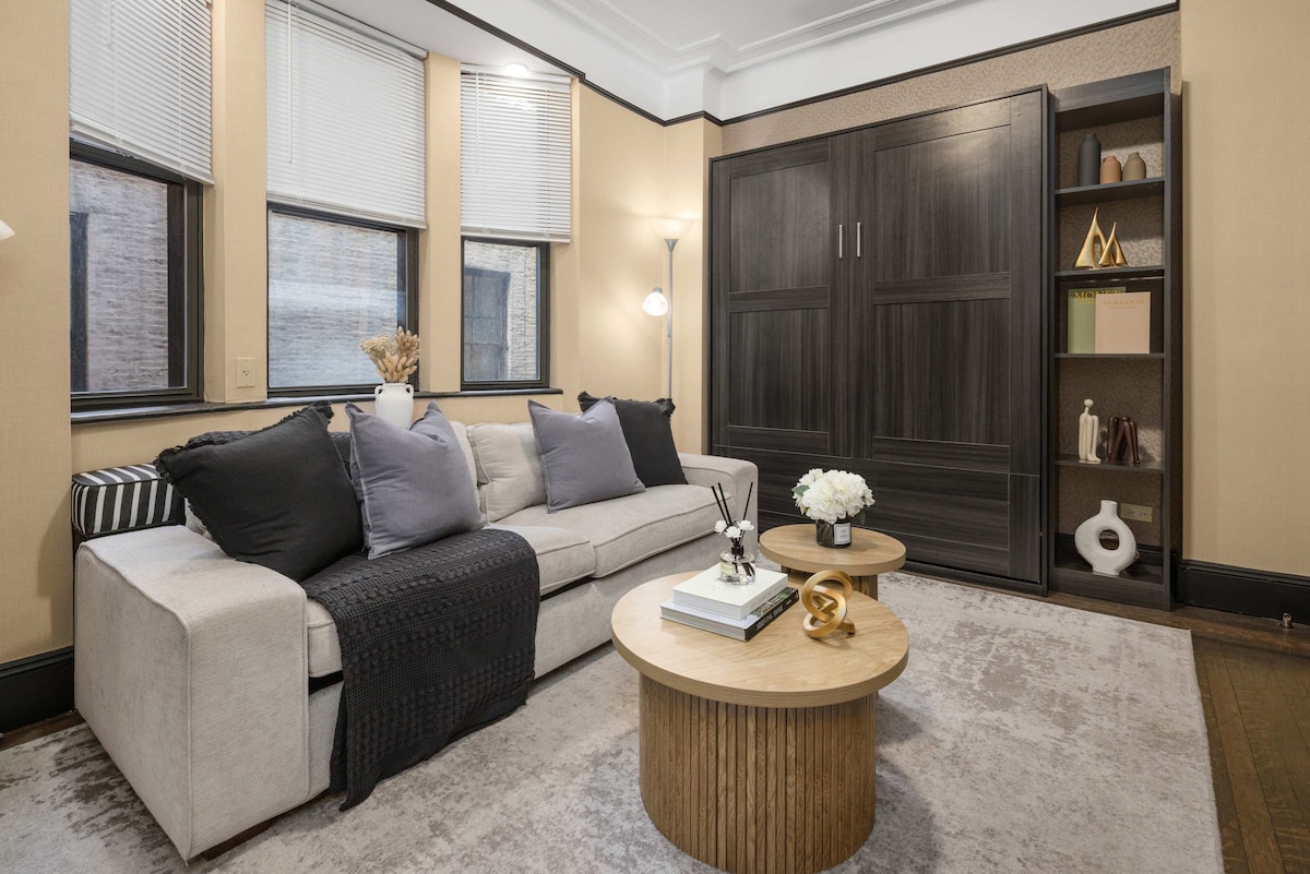 Velkommen til ditt andre hjem Studio med kontorsuite med den ideelle beliggenheten på Times Square. Hyggelig interiør, tregulv og moderne fasiliteter. Velutstyrt kjøkken, mykt sengetøy og TV. Gangavstand til mange toppattraksjoner, restauranter og shopping. Bestill nå for et stilig tilfluktssted! Et ideelt utfluktssted for eksamensfeiringer, Memorial Day-helgen eller enhver spesiell anledning!