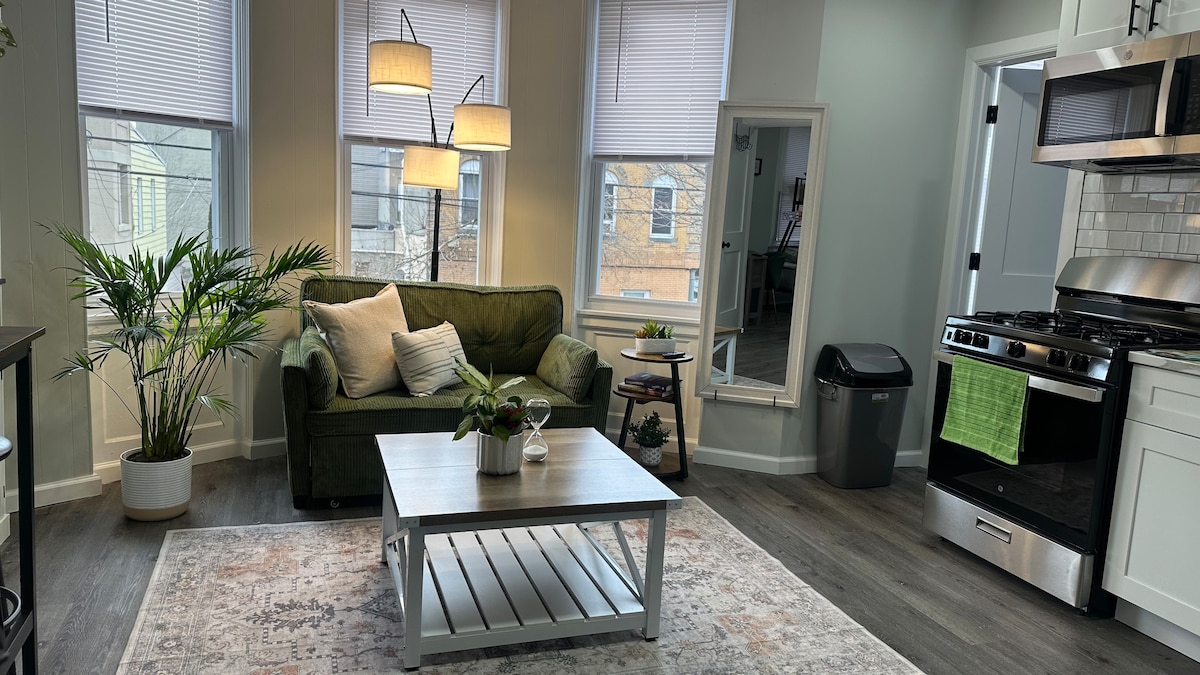 - Privat moderne leilighet med 2 soverom som sover 4. - 24/7 busser til Times Square. Manhattan på under 20 minutter. - Enkel nøkkelfri innsjekking. - Enhet i 2. etasje med utsikt over NYC-skylinen. - Trinn til flotte kaféer, restauranter, shopping. - Enkel tilgang til motorveier og gjennomkjøring. - Betalt kommunal parkeringsplass ved siden av. - Luksus sengetøy, ny oppussing, Smart TV, WiFi. Om du lurer på noe er det bare å sende oss en melding:)