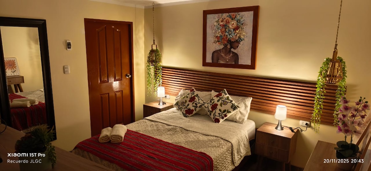 Leiligheten vår ligger i et boligområde, to kvartaler fra Urb. Sta. Victoria og 1,5 km fra sentrum, i nærheten av restauranter, kafeer og markeder. Den har fire senger, trådløst nettverk, DirecTV, varmt vann, vaskemaskin, møbler og gjenstander. Du kan nyte ro, sikkerhet og lite trafikk i dette området. Det passer for turister, familier og forretningsreisende.