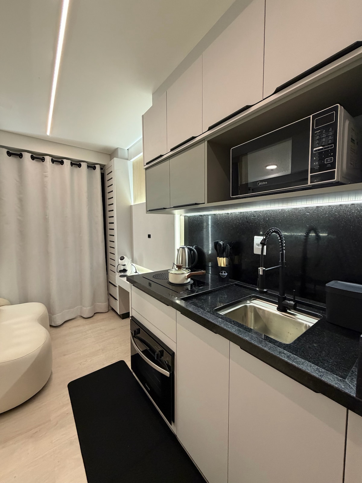 Moderne og koselig studio i sentrum av Urubici! Stedet tilbyr komfort, praktiskhet og flott beliggenhet, ideelt for fritids- eller jobbreiser. Perfekt for par som ønsker en romantisk atmosfære uten å gi avkall på det praktiske ved byen i Serra Catarinense. Velutstyrt miljø. Marked og apotek 150 meter unna og restauranter i området. Privat parkering, eksklusivt vaskeri for bygningen, tilgang med ansiktsbiometri og elektronisk lås for mer sikkerhet og bekvemmelighet.