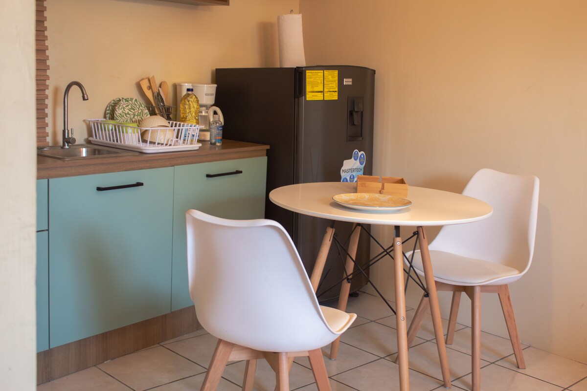 Vakker leilighetsstudio i hjertet av Usulután – ideelt for par eller familie på fire. Nyt et komfortabelt og praktisk opphold i dette koselige studioet som ligger i et trygt, sentralt område. Hvis du skal med bil, er du 5 minutter fra bypass og 10 minutter fra C.C Plaza Mundo Usulután, 1 time fra Surf City 2, 45 minutter fra Pueblo de Alegria. Perfekt for korte eller lange opphold, det har 200 MB Wi-Fi og Netflix. Gateparkering; det er et kamera. Nyt komfort, stil og flott beliggenhet!