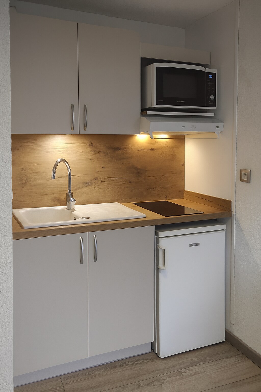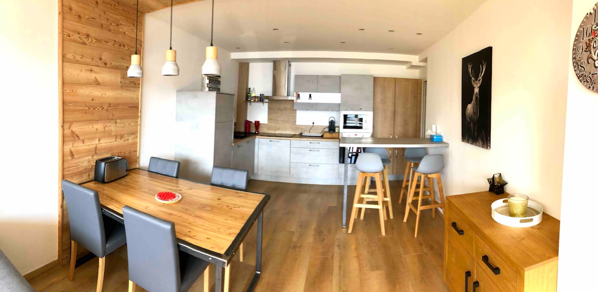 Leilighet på 30 m2 klassifisert 3*, nylig renovert med balkong vendt sørover og utsikt over løypene, rolig beliggenhet 5 minutter å gå fra butikker og heiser. Fullt utstyrt for 4 personer, stor stue med kjøkkenkrok som åpner seg mot en balkong vendt sørover. Fjellhjørne med køyesenger, dusjrom med toalett. Sengetøy er levert og på plass. Velkomstpakke med kaffe, te, dagligvarer, rensemidler og hygieneartikler. Ingen Airbnb-gebyr
