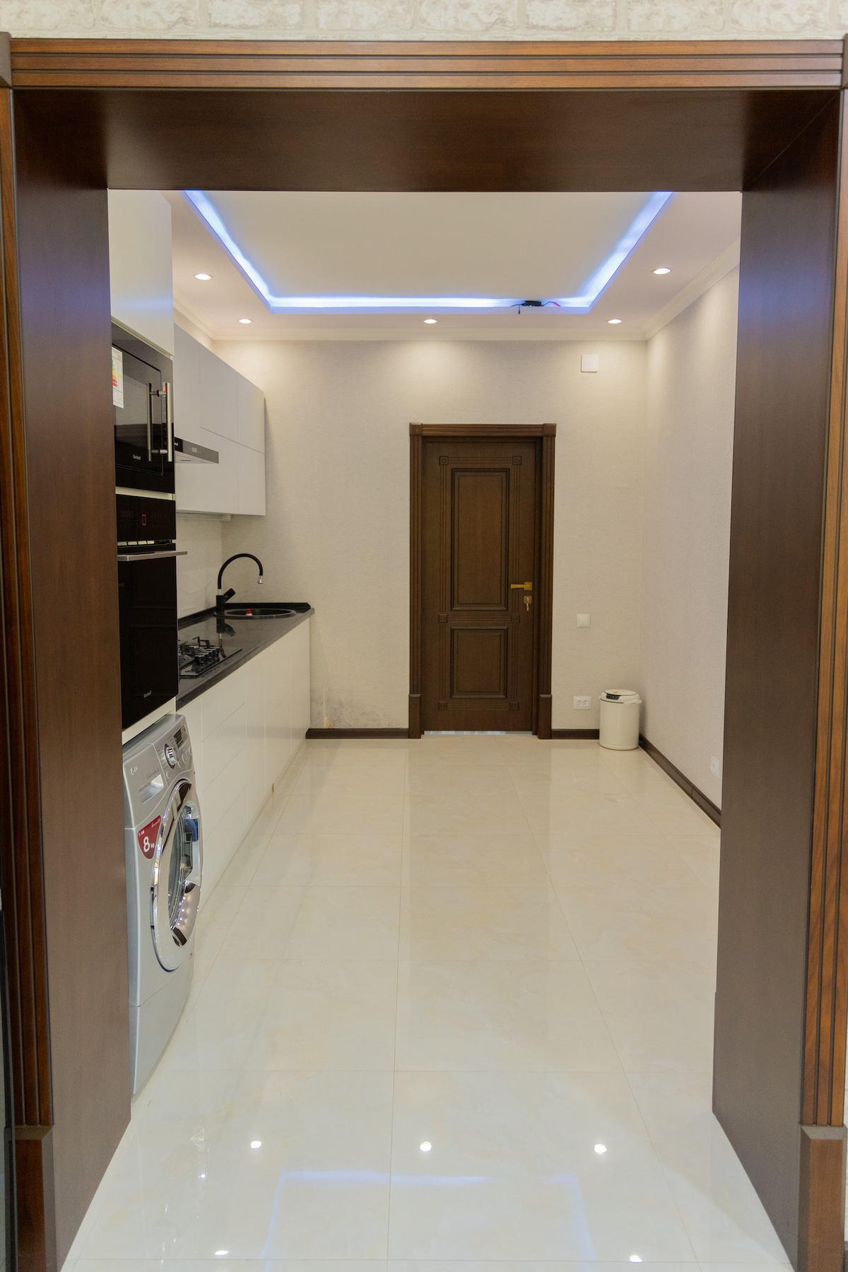 Fordyp deg i atmosfæren i førsteklasses designerleiligheter i hjertet av Tasjkent. Stuen med en bouclésofa, stilige møbler og salongbord i marmor skaper en femstjerners hotellfølelse. Leiligheten har to soverom: et hovedsoverom med en stor seng og et annet soverom med to separate senger – perfekt for en familie, venner eller kolleger. Et omkledningsrom med belysning, et fullt utstyrt kjøkken og et bad i boutiquehotellstil. Perfekt for gjester som setter pris på komfort, estetikk og et høyt servicenivå.