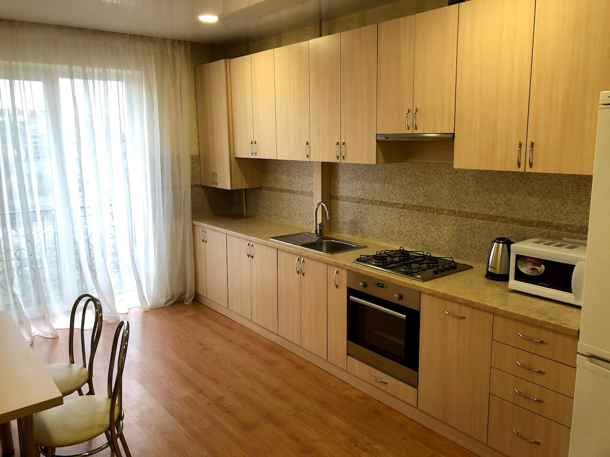 To rom (fire senger), totalt areal på 52 kvadratmeter. det er en stor matvarebutikk i nærheten; varmt gulv i hele leiligheten en seng med to soverom, sofa (sammenleggbar 2-sengs), klimaanlegg, TV (smart-TV), vaskemaskin, 🛜TRÅDLØST NETTVERK, kjøleskap, hårføner, vannkoker, elektrisk komfyr, mikrobølgeovn, stekeovn og kjøkkenredskaper. 4 håndklær, tøfler, hygieneprodukter; ligger i sentrum av byen, ved siden av promenaden; en balkong med fin utsikt over en av byens sentrale gater