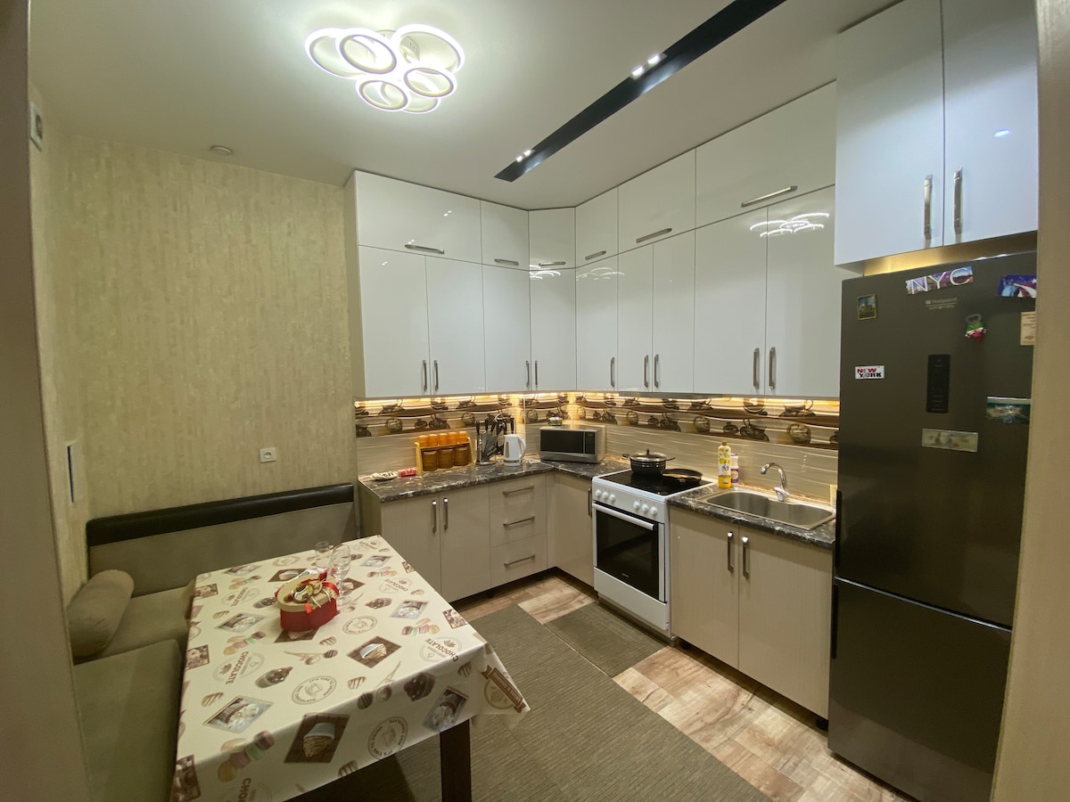 Luksusleilighet i nærheten av sentrum - det motsatte av Hilton-hotellet. Helt nybygd elitebygning, med to soverom i 7. etasje med tre heiser. Ett soverom, en stue med en sofa som kan bli til en seng. Like nede har vi et matleveringssted, apotek og få andre butikker. I tillegg finnes det: Hvis du trenger noe ekstra du ikke finner på utleiestedet mitt - bare send meg en melding, så skal jeg gjøre det tilgjengelig for deg under oppholdet ditt