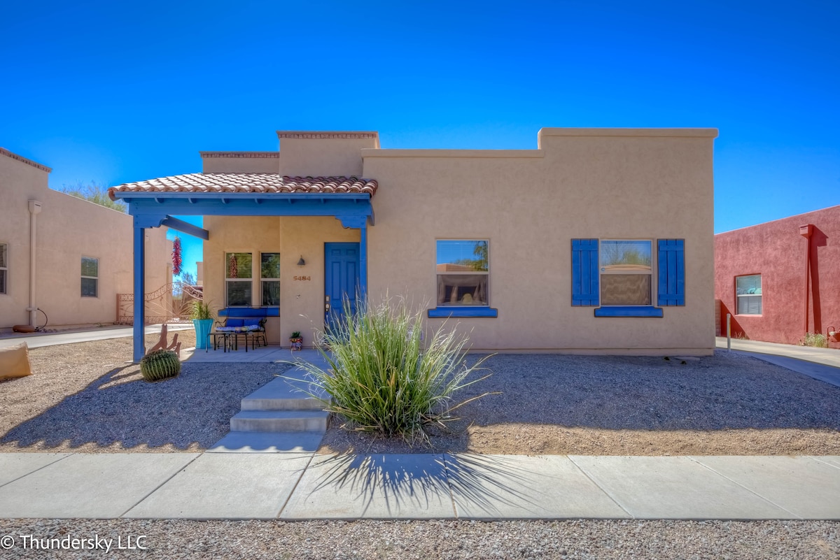 1937 adobe bungalow, som ligger i det historiske Palo Verde-nabolaget, bare noen minutter unna UofA, sentrum, Banner Medical Center, Tucson Botanical Gardens og noen kvartaler fra The Arizona Inn. Tykke adobe-vegger og doble vinduer gjør det til et rolig tilfluktssted. Nyt den overbygde terrassen, det modne velstelte ørkenlandskapet - foran og bak - og en privat utedusj. Kombinerer moderne bekvemmelighet med vintage sjarm, inkludert eksklusive apparater og en kombinasjon av skap/skrivebord/skapseng.