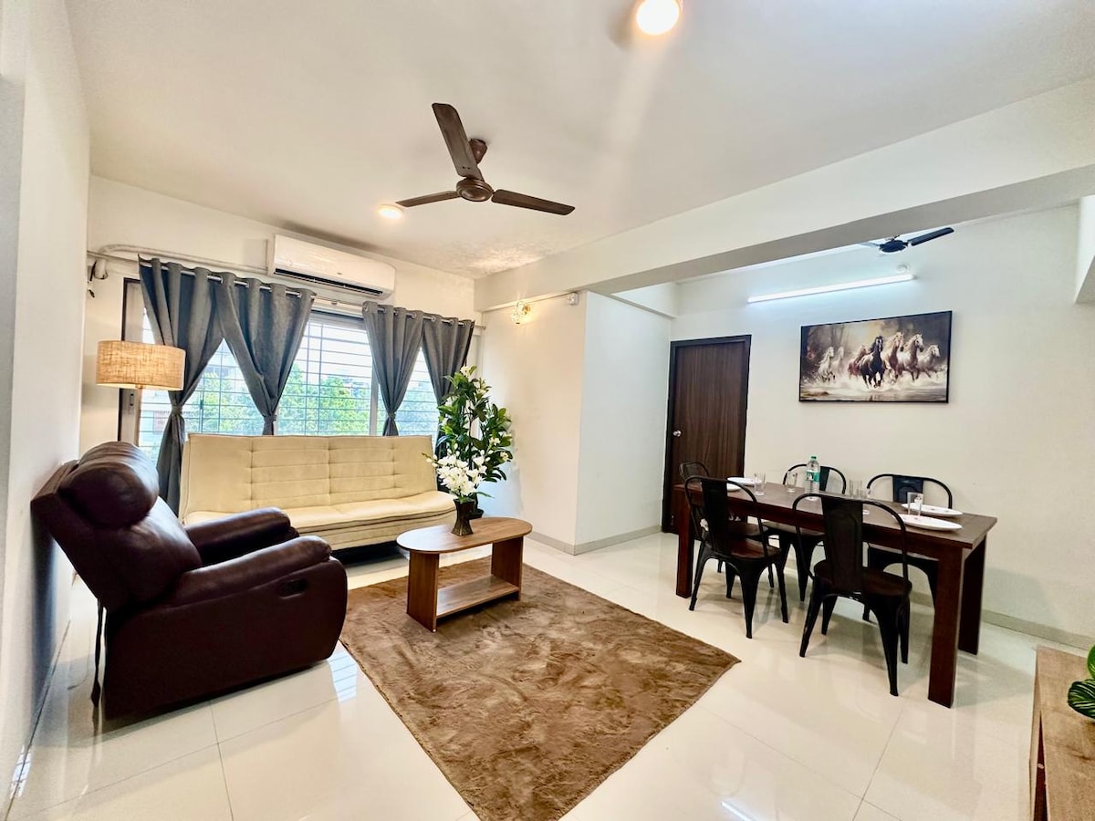 Nyt de uvirkelige solnedgangene🌅 Lys, luftig og moderne! Blissville er alt som er estetisk✨ Innredningen i hele stedet er smakfullt i Aqua-tema som utfyller havutsikten. 🩵 Denne 2bhk er hjemmet vårt, laget med kjærlighet. og vi inviterer deg hit for å nyte sjelfulle øyeblikk med dine kjære 💜 Nyt fantastisk utsikt over hele byen og det endeløse, storslåtte havet fra alle kroker! Perfekt for langvarige opphold, hjemmeferie, arbeidsferie, soloreisende, turister og de som søker luksusferie.🌟