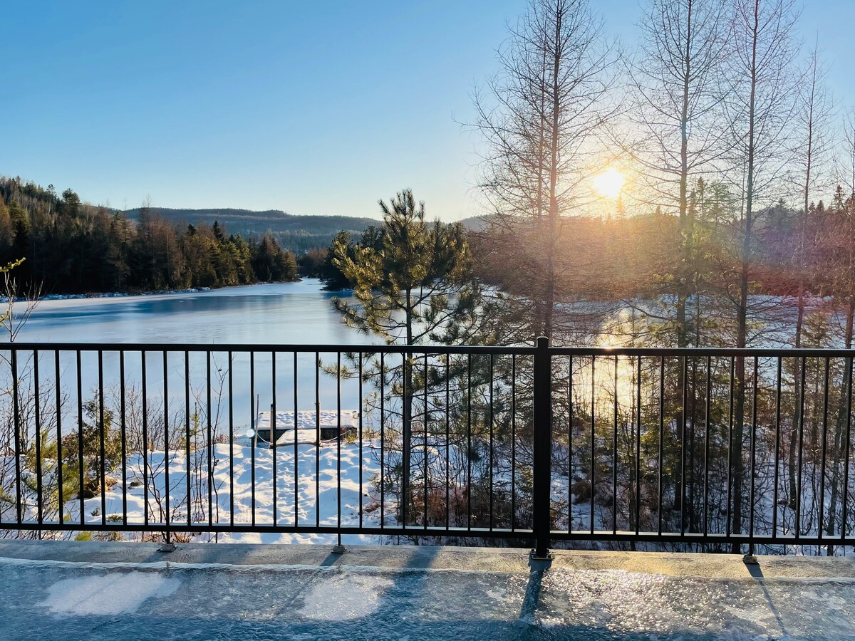 Chalet i skandinavisk stil i Lac-Supérieur, QC. CITQ# 300328 Denne Spahaus ligger 300 meter fra den vakre Lake Superior, og er en perfekt kombinasjon av natur, på grunn av beliggenheten i skogen og moderniteten, med sine vakre åpne innendørsområder, utendørs jacuzzi, innendørs badstue og mye mer! - Beliggende syv minutter fra skianlegget Mont-Tremblant Versant Nord. - Beliggende 20 minutter fra landsbyen Mont-Tremblant.