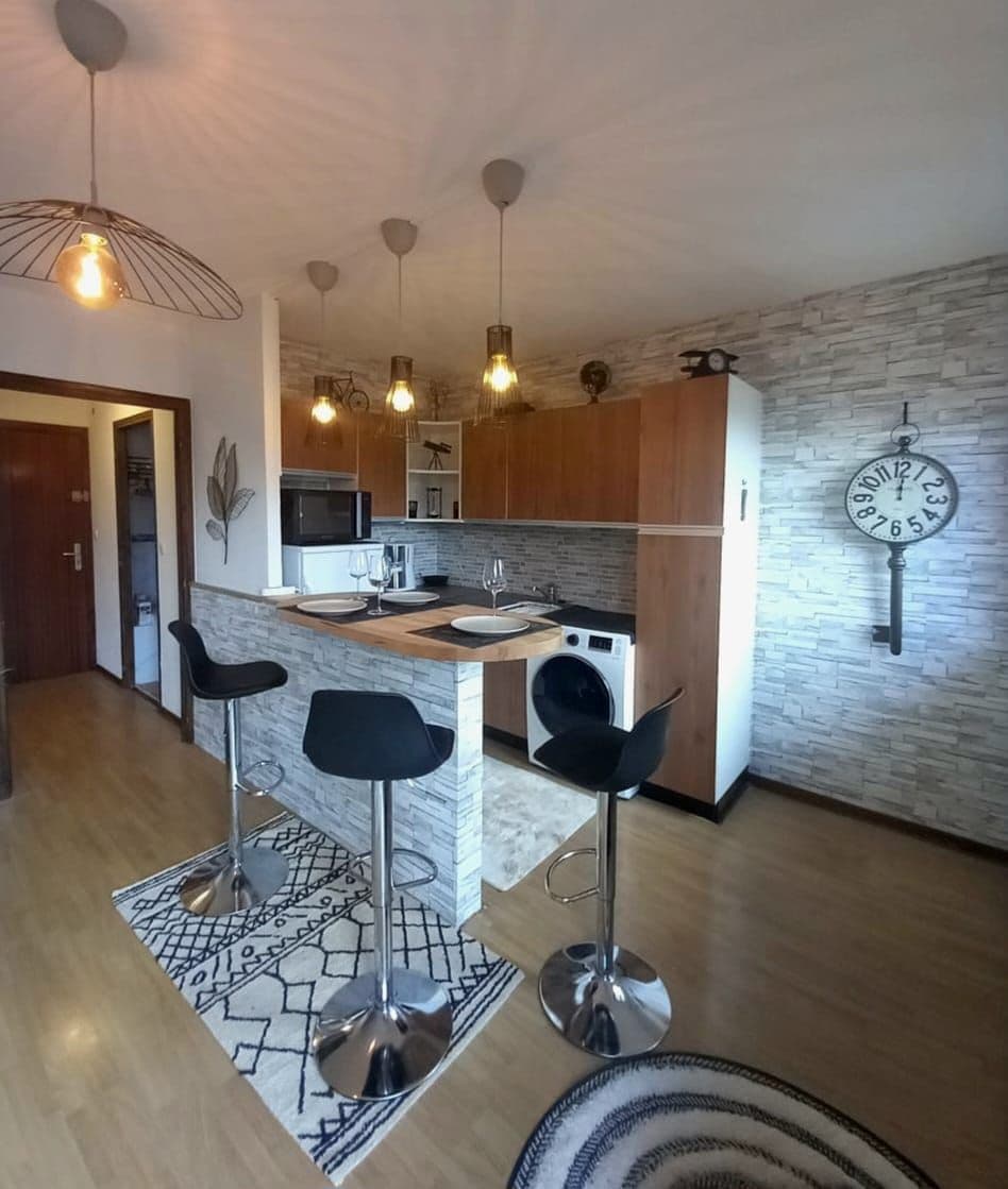 Studio tout équipé situé au 1er étage, parking gratuit au pied de la résidence. Vous trouverez une banquette lit en 160*190 cm et également un lit superposé en 70*190cm. La cuisine est équipée avec lave linge, sèche linge, lave vaisselle, plaque induction, micro-onde et réfrigérateur. Nombreux rangements. La salle de bain est entièrement rénovée avec baignoire et sèche serviette. Toilette séparé. La loggia vous permet de profiter de l'extérieur avec vue sur les montagnes.