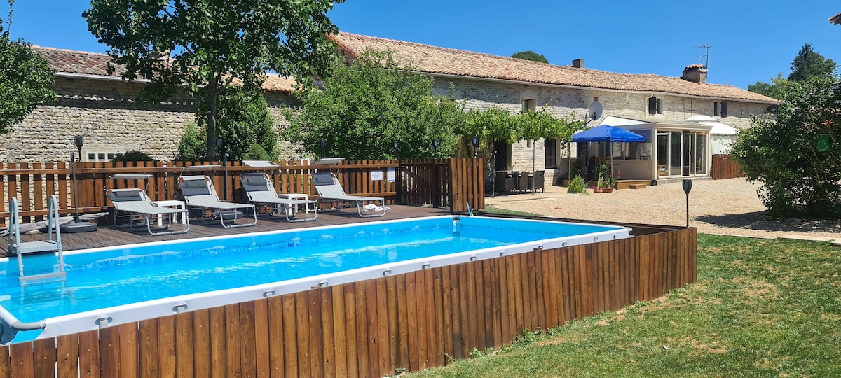Vine Cottage er en sjarmerende gite i en avsidesliggende del av det landlige Frankrike. Det er plass til fire personer. Et stort soverom ovenpå med en kingsize-seng og et mindre dobbeltrom nede med to enkeltsenger. Det er et dusjrom i første etasje. Den historiske byen Melle ligger bare fire km unna, med et utvalg av supermarkeder/restauranter osv. Selve gite er svært privat med et vakkert svømmebasseng, hage og spiseområde. Rikelig med parkering, og sentral oppvarming. Hytta er tilgjengelig året rundt.