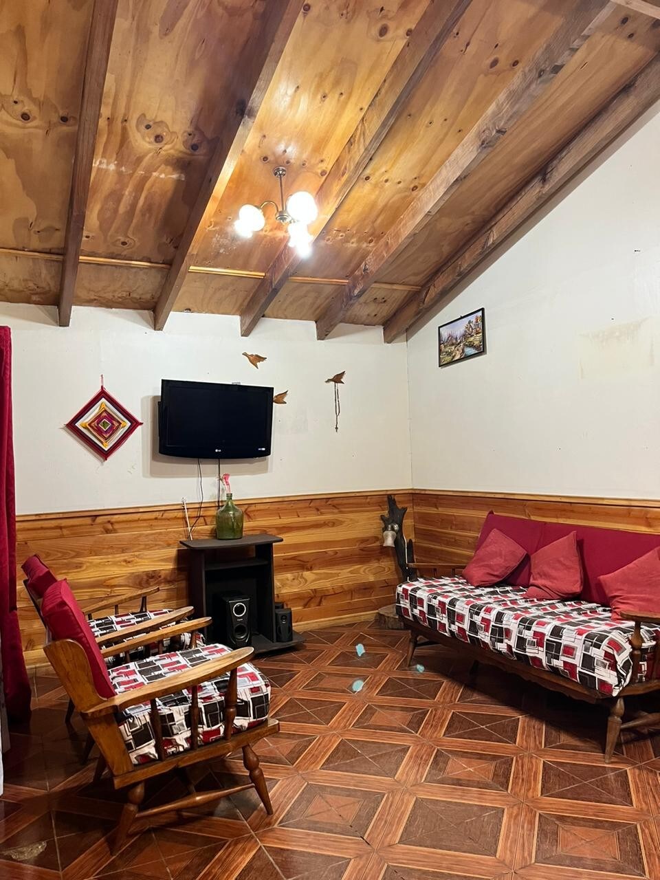 Hytte som ligger på en åker ca. 6 km fra ruten Vllca–Pucón, utstyrt for fire gjester med sengetøy, håndklær, kjøkken med mikrobølgeovn, vannkoker og kjøleskap. Med vedovn, elektrisk komfyr og varmeovner. Satellitt-TV Direct TV Prisen inkluderer en halv sekk ved per opphold fra 1. mai til 30. august. Boblebad på eiendommen mot en ekstra kostnad på $ 45 000 for fire timers bruk. Boblebad-reservasjonen må koordineres én dag i forveien for å forberede den.