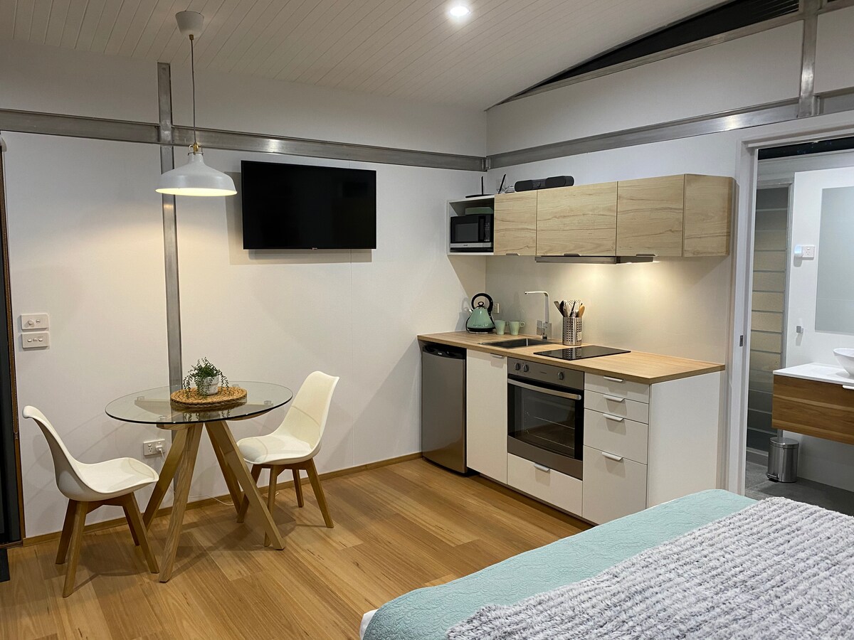 Opplev skjønnhet, ro og fred i denne vakkert stiliserte, luksuriøse hytta for to voksne. Slapp av foran den knitrende peisen med et glass vin eller en varm kopp te. Slapp av i badekaret og sovn om natten i den luksuriøse kingsize-sengen med snøhvitt sengetøy. Våkn opp til spektakulær utsikt over fjell og daler mens du nyter frokosten din og ser ut av de store vinduene. Hils på det lokale dyrelivet, inkludert kenguruer og skogsender, og bare "vær".