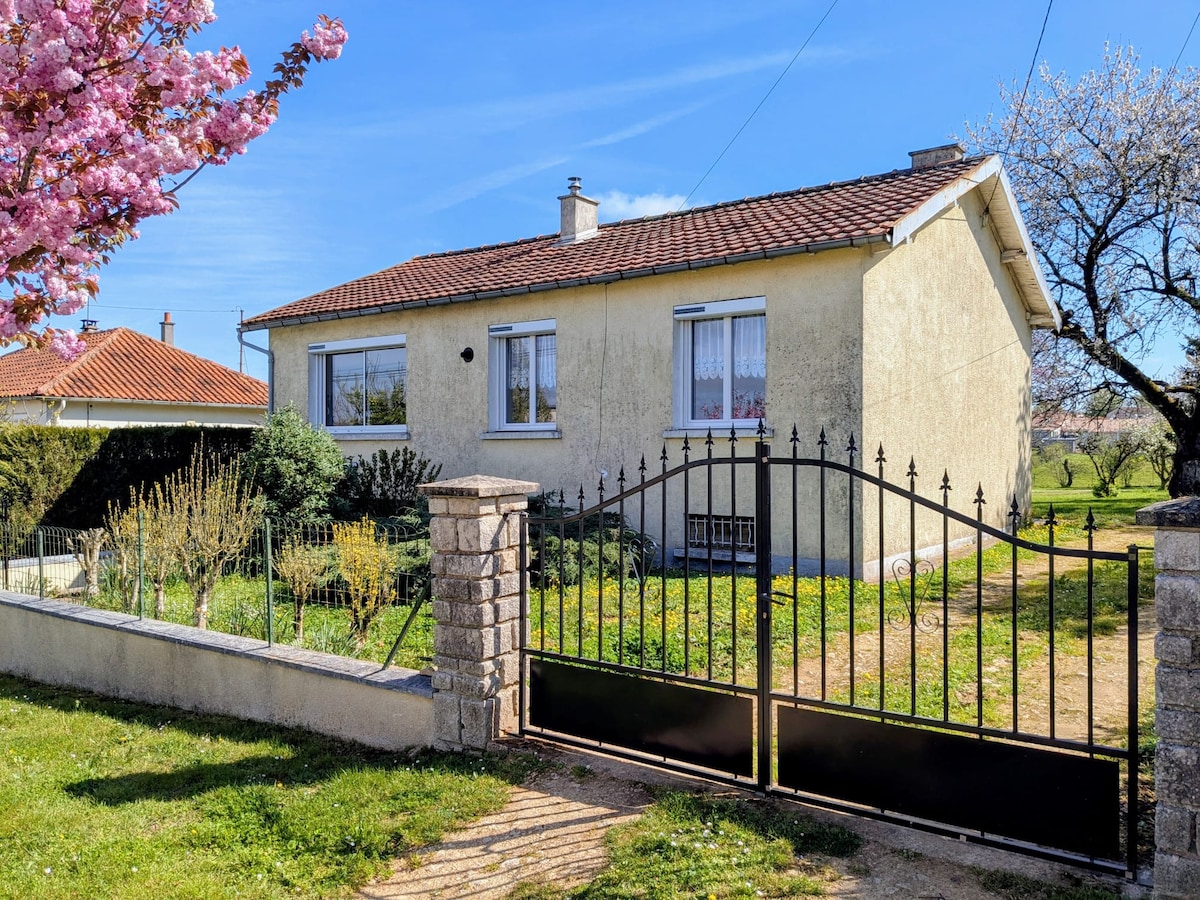 Lite sjarmerende hus, inngjerdet på landet og ideelt plassert. Kjæledyr er velkomne uten ekstra kostnad. Ikke egnet for barn i BA og personer med nedsatt funksjonsevne. I nærheten av alle fasiliteter. 4 minutter fra Iles de Payré (spasertur langs vannet). 20 minutter fra Poitiers Sud og Apekattdalen. Futuroscope 40 min. Marais Poitevin, St Savin Abbey 1 time. La Rochelle 1t15. Du kan nyte området for å slappe av, spise ute ... Våre sykler, molkky, andre spill er tilgjengelige.
