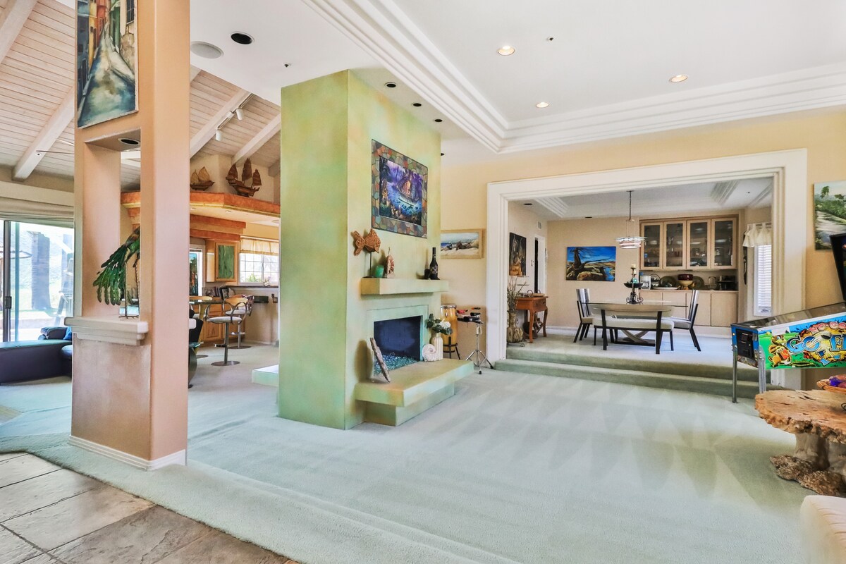 Lad batteriene på dette unike og rolige overnattingsstedet. Dette Santa Clarita-hjemmet ligger på toppen av en lang innkjørsel med utrolig utsikt. 15 minutter fra 6 flags, og bare minutter fra lokale butikker, restauranter og motorveien. Med to underholdningsplasser er dette ikke noe du bør gå glipp av. Hagen har utsikt, og bakgården er komplett med en grilløy, 65 tommers TV og tilpassede sitteplasser for store og små grupper. Dette smarte hjemmet har en TV i hvert rom, fire senger og arkadespill i garasjen.