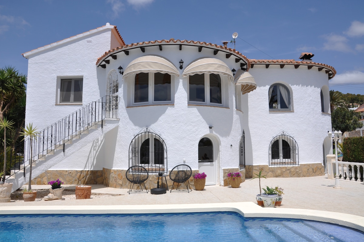 Vår fortryllende villa, med sin utrolige hage, svømmebasseng og grill, ligger 15 mns gang fra strender og en vannsportklubb, Les Basetes, hvor du vil kunne gjennomføre nautiske aktiviteter som vindsurfing, katamaran, dykking osv. Den fantastiske utsikten over havet og Peñon de Ifach, fra huset, vil gjøre ferien din utilgivelig!!