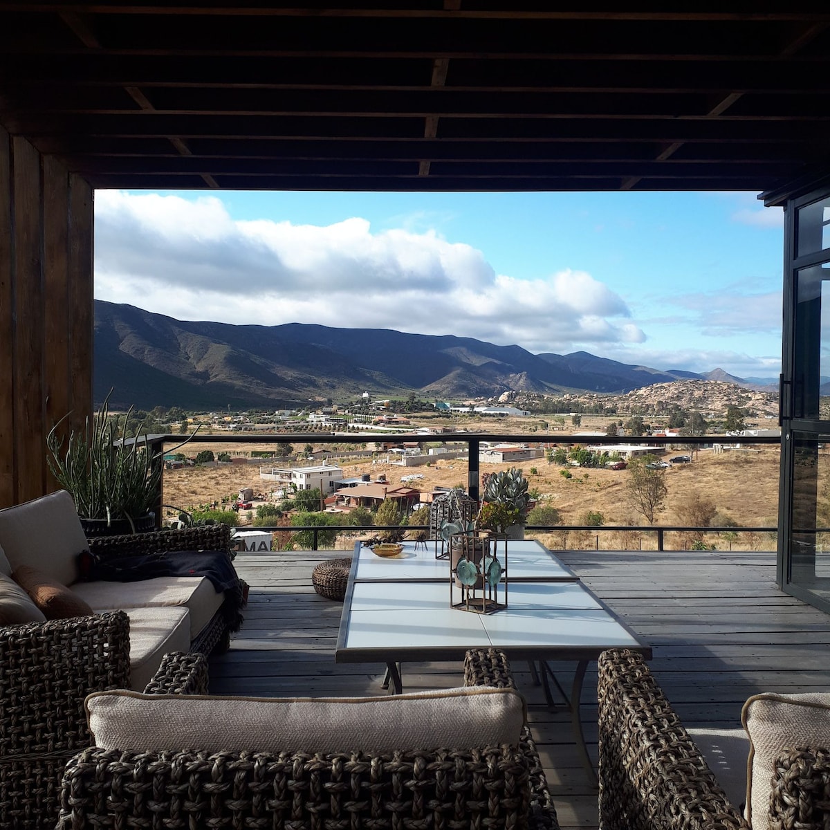 Nyt utsikten over vingården, fjellet og dalen mens du fanger soloppgangen i atriet og solnedgangen på terrassen. Dette hjemmet var ment for underholdning med både i og uteområder for maksimalt seks personer. Beliggenhet i hjertet av Valle med enkel tilgang fra riksvei 3. Vi er innenfor 5-15 minutter fra flere vingårder og fantastiske Michelin-stjerner og Latin-Amerika Topp 50 restauranter. Vinmuseet ligger fem minutter unna. Arena Valle de Guadalupe ligger 20 minutter unna.