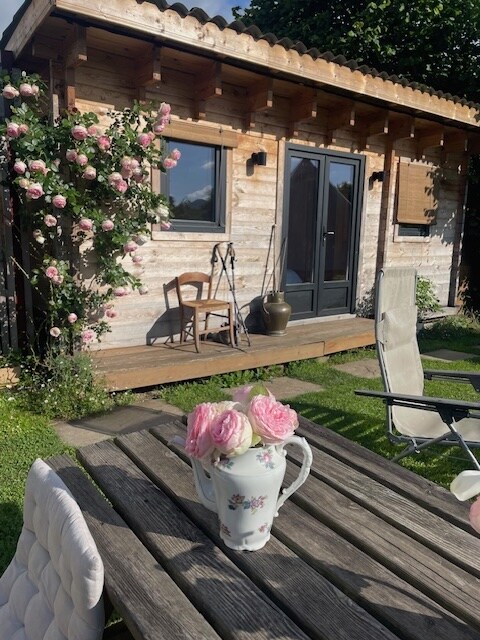 En naturlig ramme for å tilbringe noen dager i Baskerland mellom fjell og hav. Trehytte i hagen til et familiehus. Svært rolig, i utkanten av et beskyttet område, nær Hendaye-stranden og noen minutter fra sentrum med bil. Bildeområdet er ditt under oppholdet. Det ligger 25 minutter fra Saint Sebastian, 30 minutter fra Biarritz, 1,20 timer fra Bilbao. Om vinteren er to radiatorer til din disposisjon. Vi har tre hunder som deler husets fellesområder.
