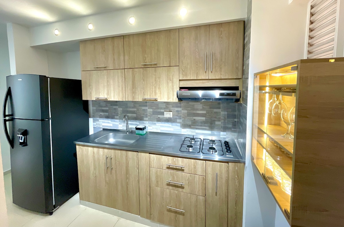 Valledupar: Trekkspillenes land! Ny og romslig! Privilegert beliggenhet, i nærheten av alt, tilgang til turiststeder som Alfonso López-plassen, Guatapurí-elven, kjøpesentre og nærliggende kommuner. Du finner butikker som Ara og D1, Exito i nærheten. Leiligheten har tre soverom med klimaanlegg, to private bad, ett felles bad, en stue, spisestue, kjøkken og privat parkering. Maksimal kapasitet er tolv personer (seks i senger, tre på matter).