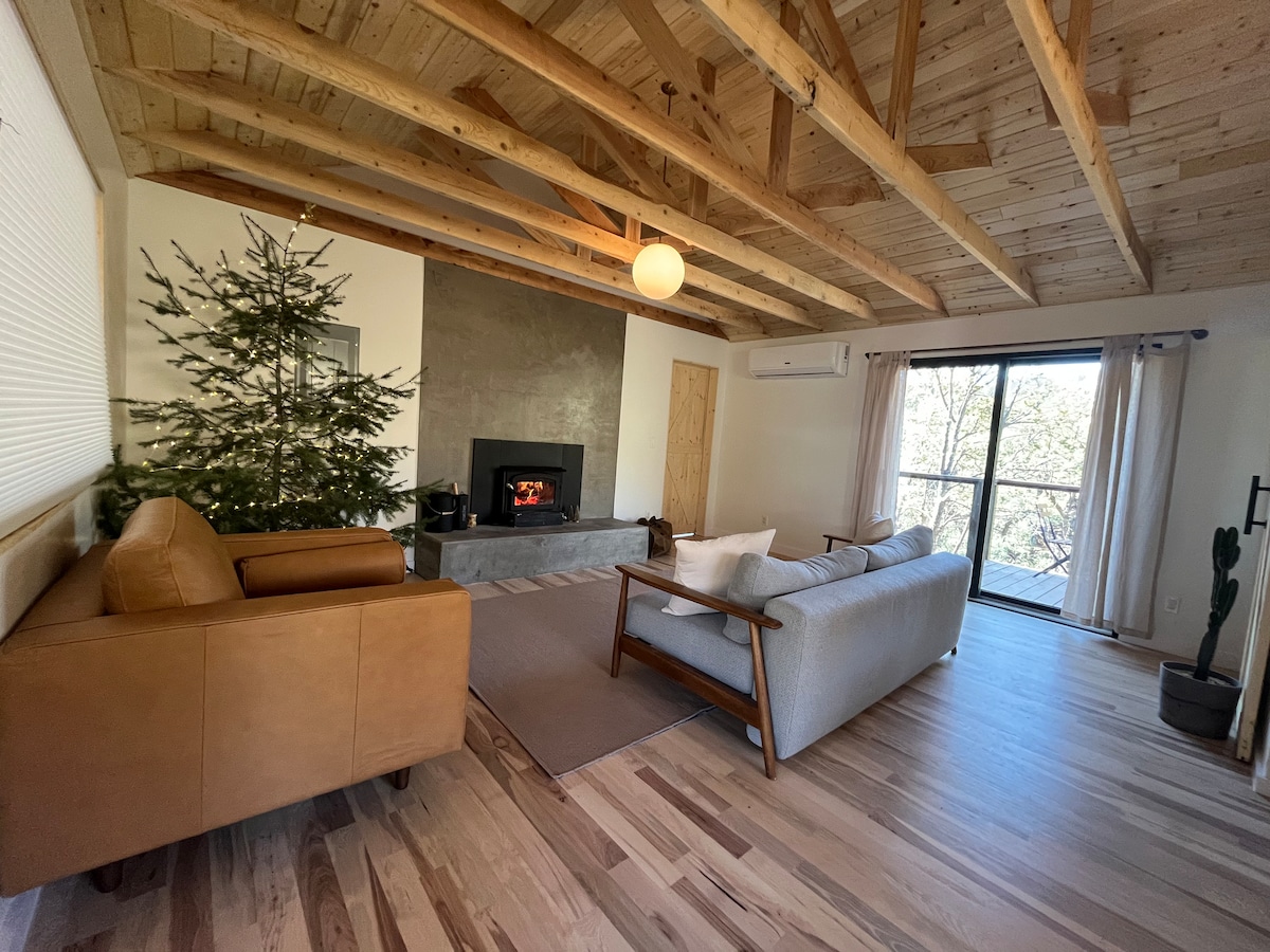 Casa del Rio ligger ved foten av et majestetisk fjell og har en fantastisk utsikt over mesaen og elven, og Jemez-elven flyter rett gjennom eiendommen. Moderne fasiliteter møter naturlig skjønnhet – nyt solnedganger fra terrassen, s'mores ved elvebredden og sovn til de beroligende lydene av vannet. Bare fem minutter fra varme kilder og naturskjønne turer, og bare en time fra Santa Fe eller Albuquerque, er det det perfekte stedet å slappe av, utforske og skape uforglemmelige minner.